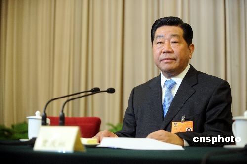 三月二日,全國政協十一屆一次會議在北京人民大會堂舉行主席團會議,全國政協主席賈慶林主持會議。中新社發 廖攀 攝