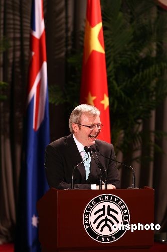 4月9日,澳大利亞總理陸克文在北京大學用中文發表演講。中新社發 盛佳鵬 攝