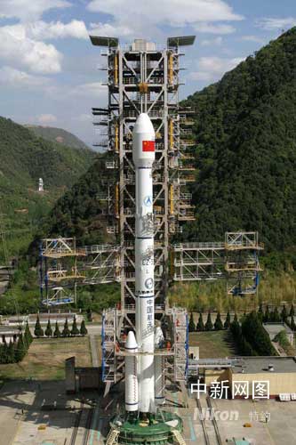 圖為發射前星箭組合體雄姿。