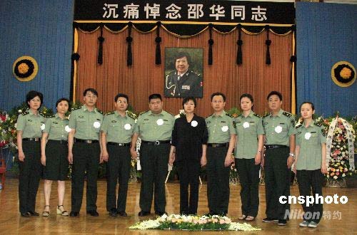 6月26日,解放軍三零一醫(yī)院的義務人員在北京悼念中國攝影家協(xié)會主席邵華。圖中左五左六為邵華之子毛新宇和妻子劉濱。邵華將軍于6月24日在北京因病去世,終年69歲。中新社發(fā) 吳小地 攝