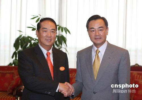 8月6日,中共中央臺(tái)辦主任王毅在北京首都國(guó)際機(jī)場(chǎng)歡迎應(yīng)邀出席北京奧運(yùn)會(huì)開幕式的親民黨主席宋楚瑜一行。中新社發(fā) 廖文靜 攝