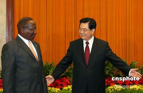 8月22日,中國國家主席胡錦濤在北京人民大會堂會見多米尼克總統利物浦。中新社發 廖文靜 攝