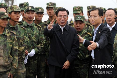 圖:賀國強(qiáng)慰問寧夏給水團(tuán)戰(zhàn)士