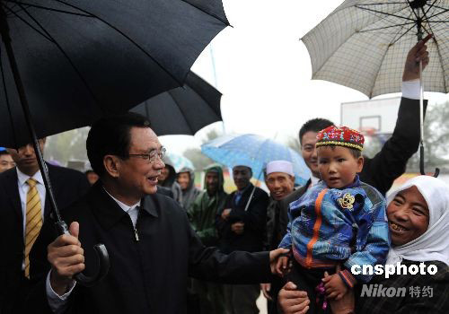 9月25日,賀國強率中央代表團(tuán)一分團(tuán)繼續(xù)在寧夏固原市展開慰問,在原州區(qū)吳莊村賀國強走村入戶慰問回族村民。中新社發(fā) 廖攀 攝