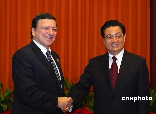 10月23日,中國國家主席胡錦濤在北京人民大會堂會見前來出席第七屆亞歐首腦會議的歐盟委員會主席巴羅佐。中新社發(fā) 廖文靜 攝