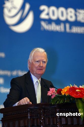 11月11日,2008諾貝爾獲得者北京論壇在人民大會堂開幕。由中科院和北京市人民政府主辦的“諾獎論壇”系列活動已成功在京舉辦了三屆,本屆論壇將在“人類的和諧與發展”的永久性主題之下,圍繞“信息與創新”的年度主題,舉行學術講座和專題論壇。中新社發 杜洋 攝