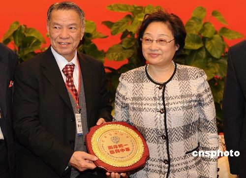 十一月十八日,中國國務院僑務辦公室主任李海峰在北京釣魚臺國賓館會見以陳永栽為團長的菲華商聯總會中國訪問團一行。中新社發 廖攀 攝