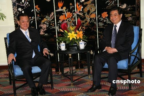 圖:胡錦濤在利馬同連戰(zhàn)會面