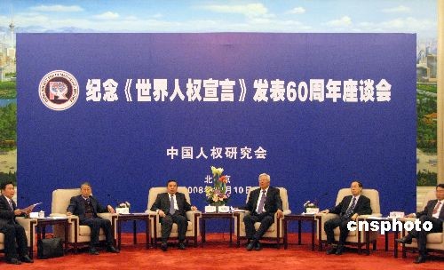 12月10日下午,中國人權(quán)研究會在北京人民大會堂舉行座談會,紀念《世界人權(quán)宣言》發(fā)表60周年。中新社發(fā) 孫自法 攝