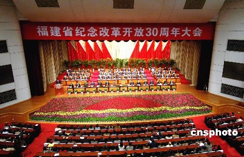 12月17日下午,福建省紀念改革開放30周年大會在福建會堂舉行。中共福建省委書記盧展工在福建省紀念改革開放30周年大會上作講話。中新社發(fā) 劉可耕 攝