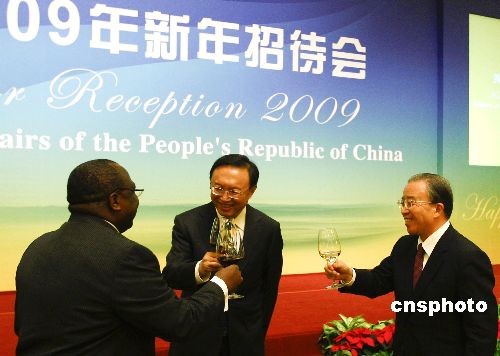 12月28日,中國外交部部長楊潔篪在北京釣魚臺國賓館舉行“外交部2009年新年招待會”,招待各國駐華使節和國際組織代表及其配偶。國務委員戴秉國、有關部門負責人及中外來賓400余人出席。中新社發 盛佳鵬 攝