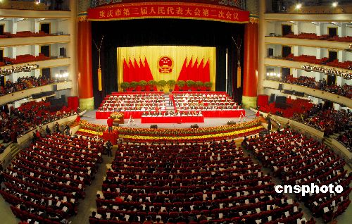 1月8日上午,重慶市第三屆人民代表大會第二次會議開幕。800多名重慶市人大代表將在5天時間內審議《重慶市人民政府工作報告》、《重慶市高級人民法院工作報告》、《重慶市人民檢察院工作報告》等,行使人大代表權利。中新社發 郭晉嘉 攝