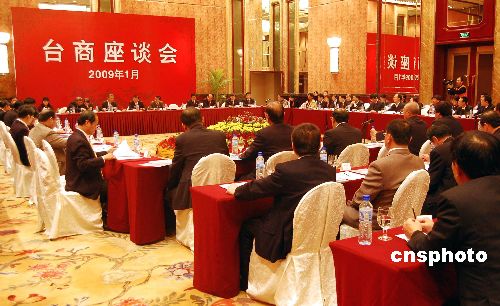 1月8日,大陸海峽兩岸關(guān)系協(xié)會(huì)與臺(tái)灣海峽交流基金會(huì)在廣州香格里拉大酒店聯(lián)合舉辦廣東臺(tái)商座談會(huì),探討臺(tái)商應(yīng)對金融風(fēng)暴沖擊,臺(tái)資企業(yè)轉(zhuǎn)型升級(jí)等問題的建議和措施。中新社發(fā) 柯小軍 攝