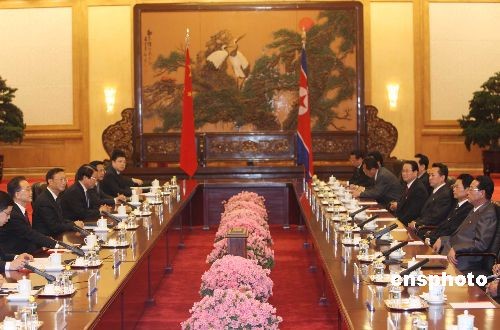 3月18日下午,中國總理溫家寶在北京人民大會堂舉行儀式,歡迎朝鮮民主主義人民共和國內閣總理金英日訪華。中新社發 任晨鳴 攝