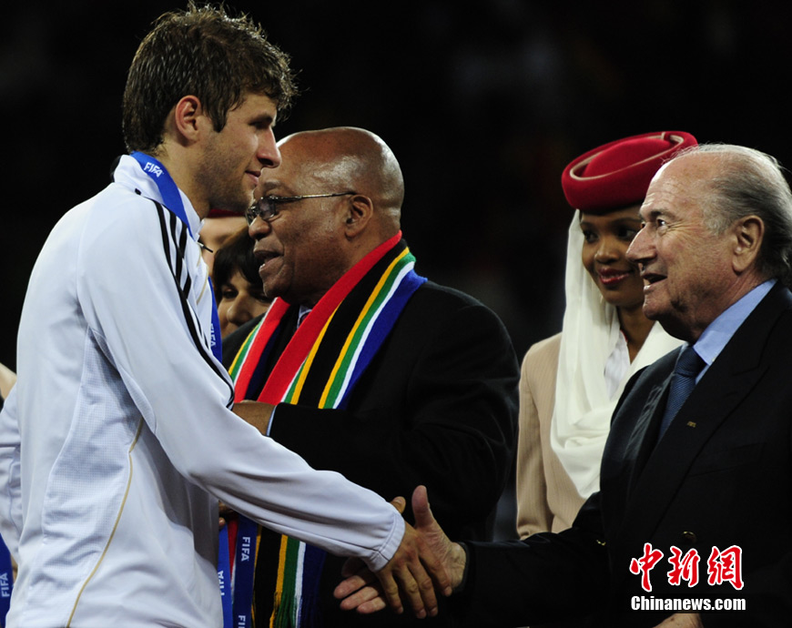 北京時間7月11日凌晨2:30,南非世界杯進行了三四名決賽的爭奪戰,由烏拉圭在伊麗莎白港的納爾遜·曼德拉海灣球場迎戰德國隊。最終在一場進球大戰中,德國隊憑借第82分鐘赫迪拉的進球一錘定音,以3-2險勝對手,獲得南非世界杯第三名。