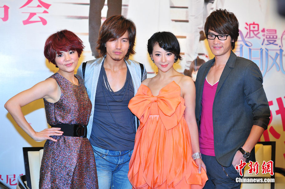 7月15日,人氣偶像劇《就想愛著你》在北京召開記者會。主演言承旭、SHE成員Ella、陳紫函和張勛杰悉數到場。劇中,Ella飾演的落魄富家女在陰差陽錯之后,來到由言承旭飾演的大律師家中當保姆,兩人在經歷了一連串的考驗之后喜結良緣,上演了一出精彩的愛情對手戲。同時,二人在戲中大量的吻戲也成為一大看點。中新社記者 李學仕 攝