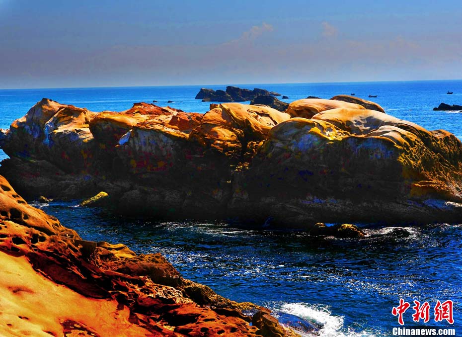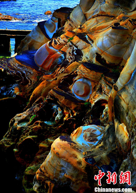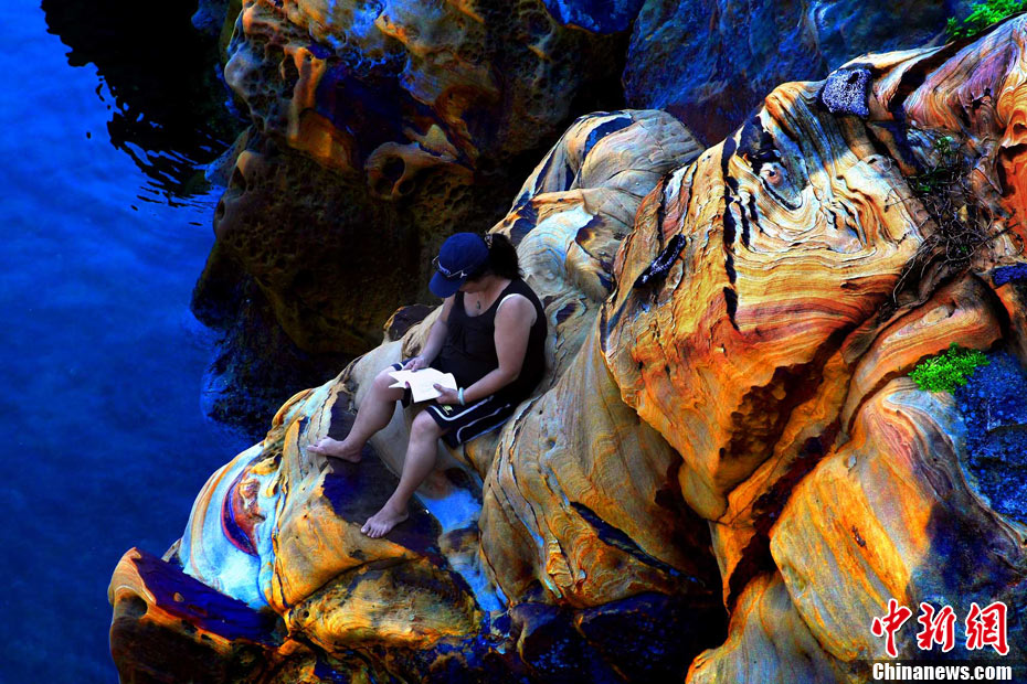 進入7月中下旬的臺灣野柳地質公園旅游區游人大增,觀光客游趣濃厚的野柳地質公園是一處突出海面的岬角,受海浪侵蝕、巖石風化等作用,形成蜂窩巖、菌狀巖、姜狀巖、臘燭臺等各種各樣的奇特景觀。中新社記者 宋吉河 攝