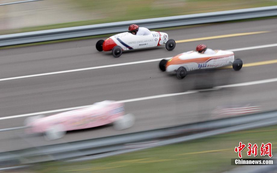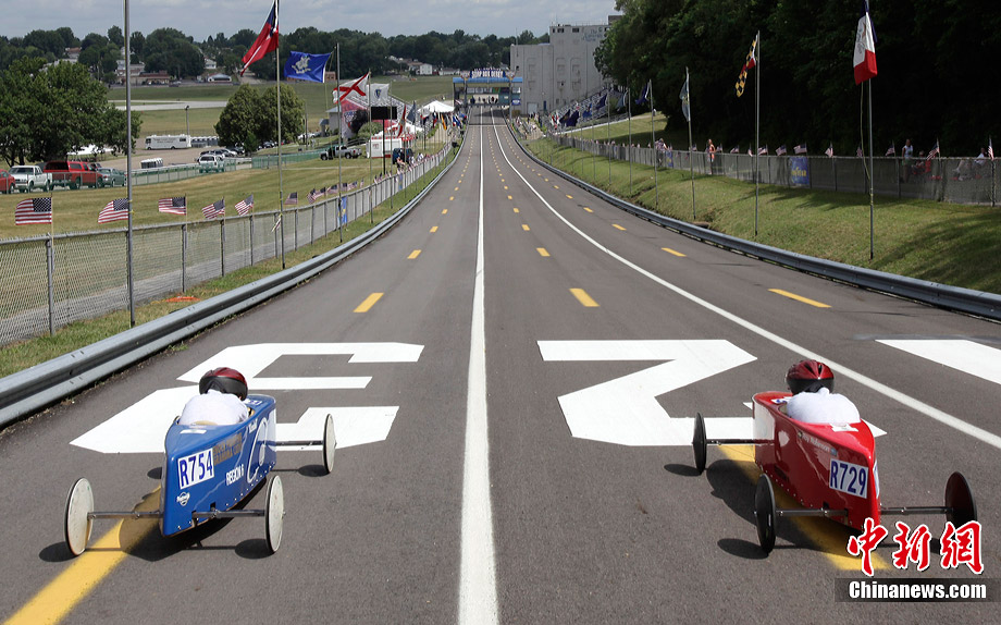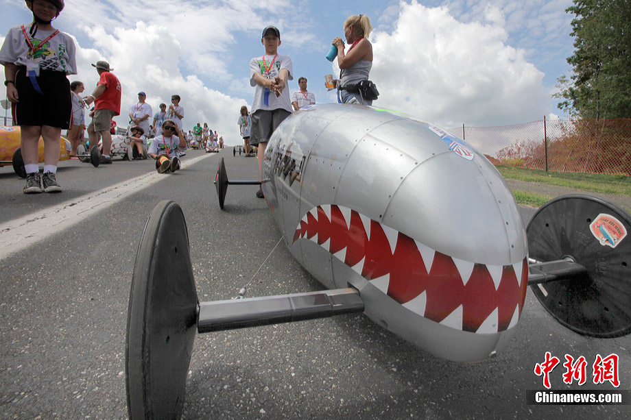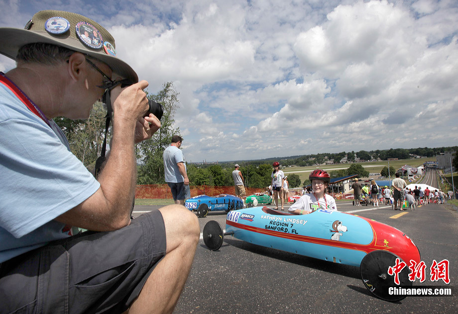 當?shù)貢r間7月21日,美國俄亥俄州舉行了第73屆全美“肥皂盒”小車大賽。來自美國各地以及加拿大、日本、德國和新西蘭的約500名車手攜帶自己的愛車參賽。“肥皂盒”小車沒有任何動力裝置,其主要設計目標是減少空氣阻力和摩擦力,以便讓小車的速度達到最高。