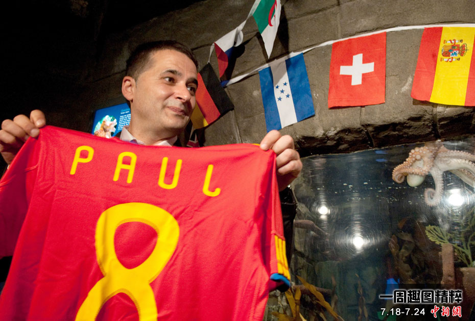 曾在2010年南非世界杯上大放異彩的“章魚哥”保羅再獲殊榮。西班牙卡瓦利諾市市長在德國奧博豪森水族館正式贈送給保羅一件印有它名字的西班牙隊隊服和保羅自己的青銅像,稱保羅為“城市最好的朋友”。