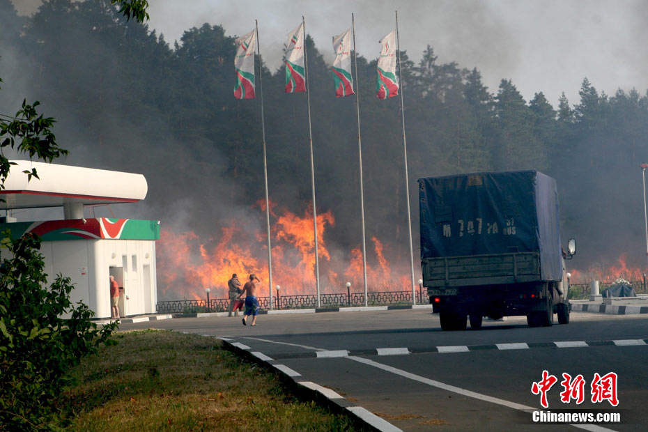 8月5日,在距離莫斯科市區僅15公里處的一家加油站附近突然燃起森林大火,情勢非常危急。當地民眾自發與消防人員全力滅火。中新社發 田冰 攝