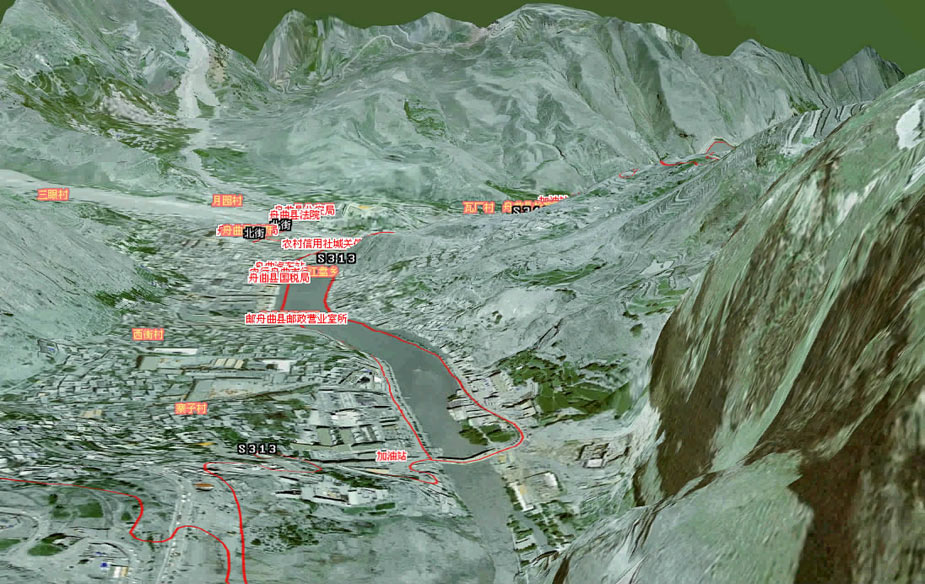 8日凌晨,甘肅省舟曲縣因強降雨引發滑坡泥石流,造成重大人員傷亡,電力、交通、通訊中斷。圖為舟曲縣(局部)災后影像圖。圖片來源:國家測繪局網站