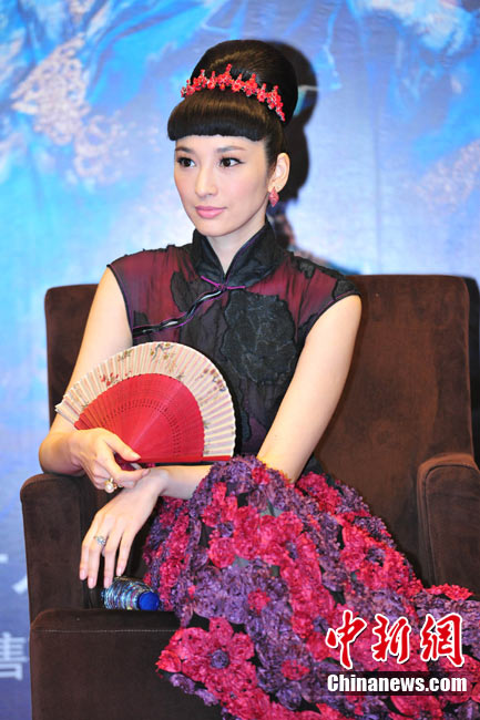 8月12日,由吳佩慈和張翰主演的驚悚喜劇《夜幕驚魂》在北京舉行關機發布會。影片導演丁小洋攜主演吳佩慈、張翰、連晉等主演均以“民國造型”出席。而發布會途中卻遭兩位自稱“吳佩慈粉絲”的重癥精神病患者砸場鬧事,兩人在一陣大呼小叫后持“刀”沖向花容失色的吳佩慈,讓現場震驚。張翰等男演員則頓時跳起護住吳佩慈。眾人合力制服兩位精神病患者后,導演竟然宣布這是演戲,讓現場媒體哭笑不得。搞笑刺激的橋段讓人對這部將于明年初上映的影片倍感期待。圖為吳佩慈優雅亮相。中新社發 李學仕 攝