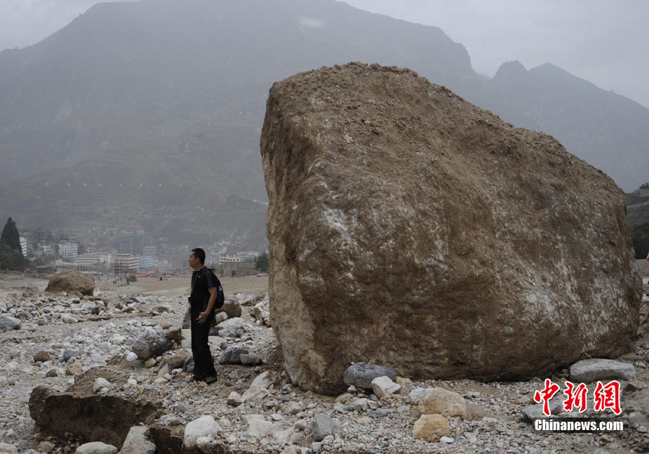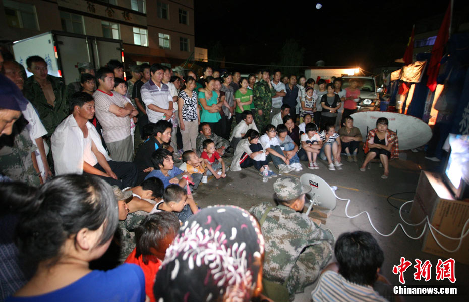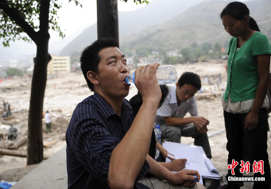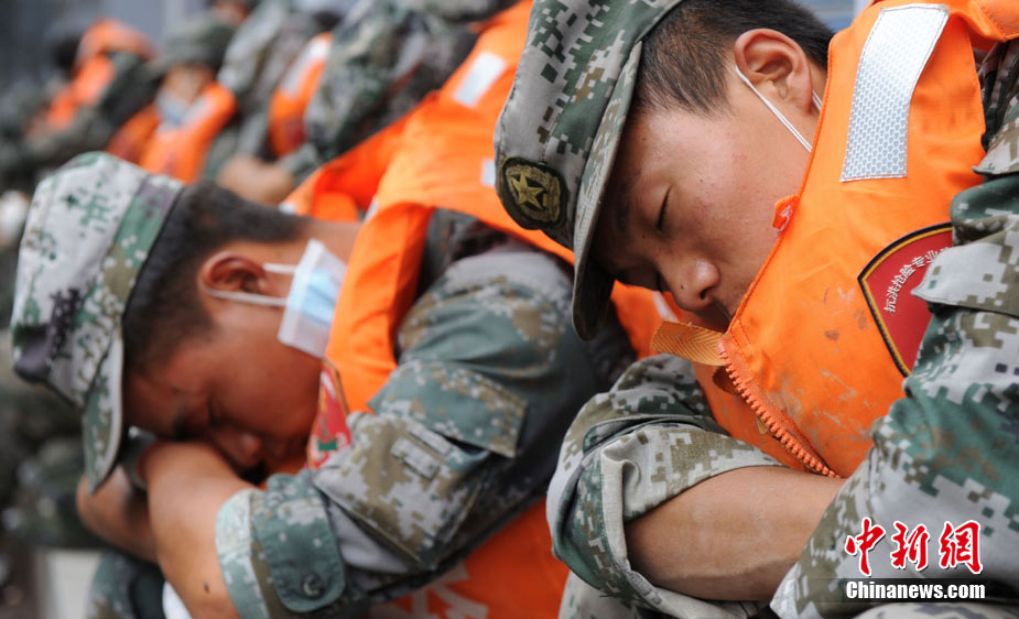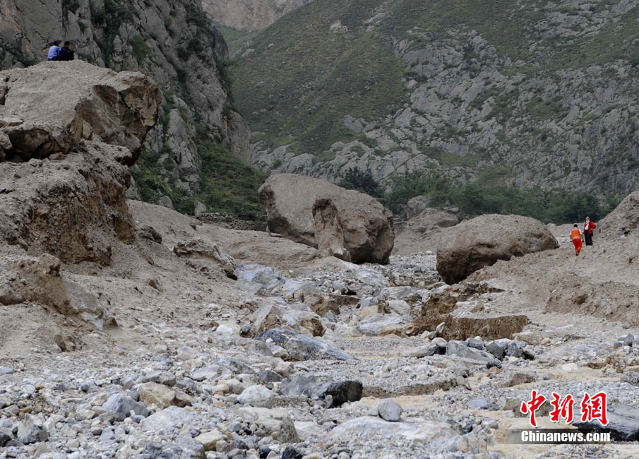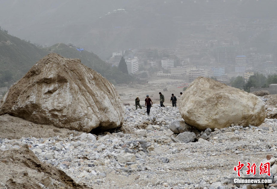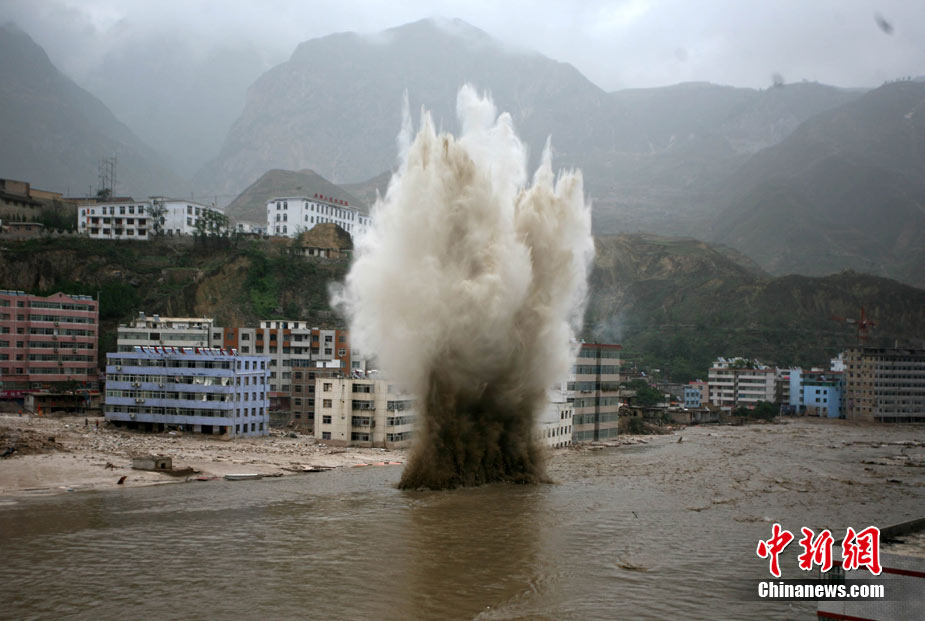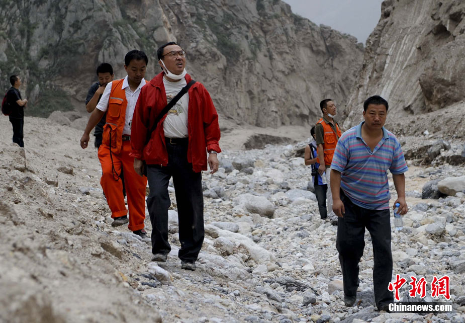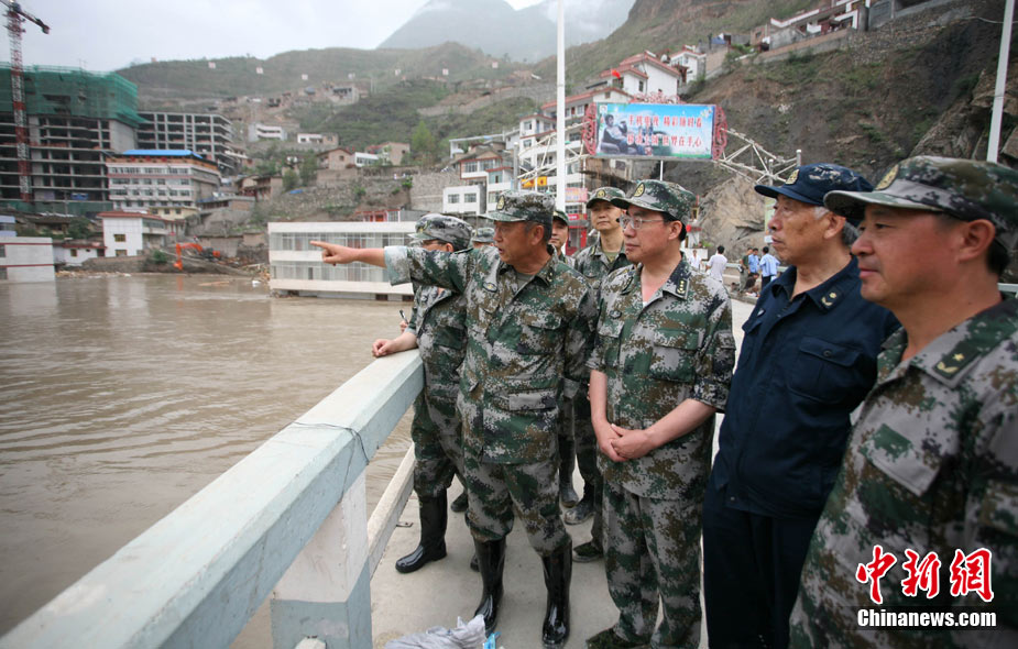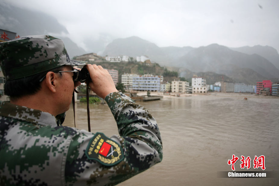 8月13日14:50分,蘭州軍區某集團軍“開山斧”工兵團已對白龍江舟曲段實施了5次爆破,疏通因泥石流等淤泥淤積堵塞的白龍江河道,在排除洪澇險情的同時,應對今日20時前過境的新一輪洪峰。圖為觀察江面變化情況。中新社發 劉忠俊 攝
