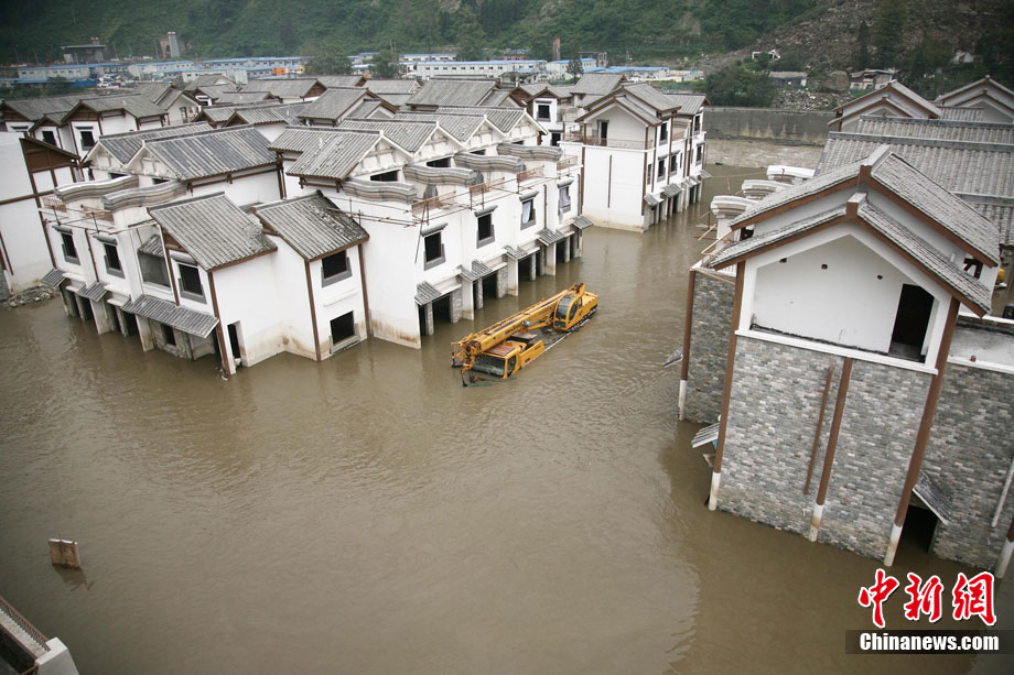 被洪水圍困的映秀新城
