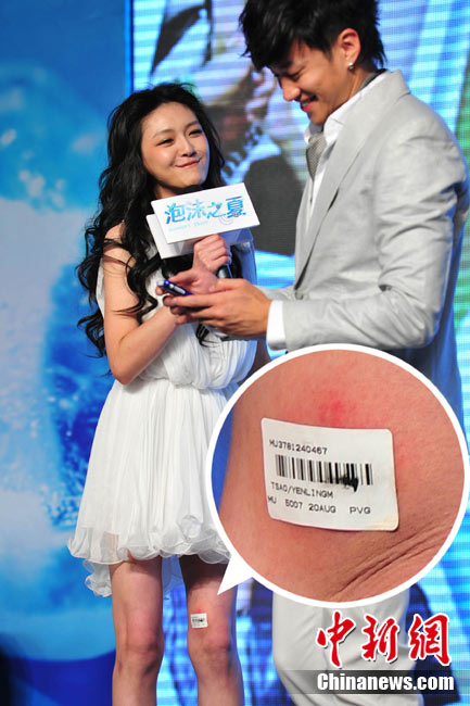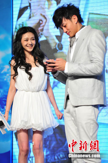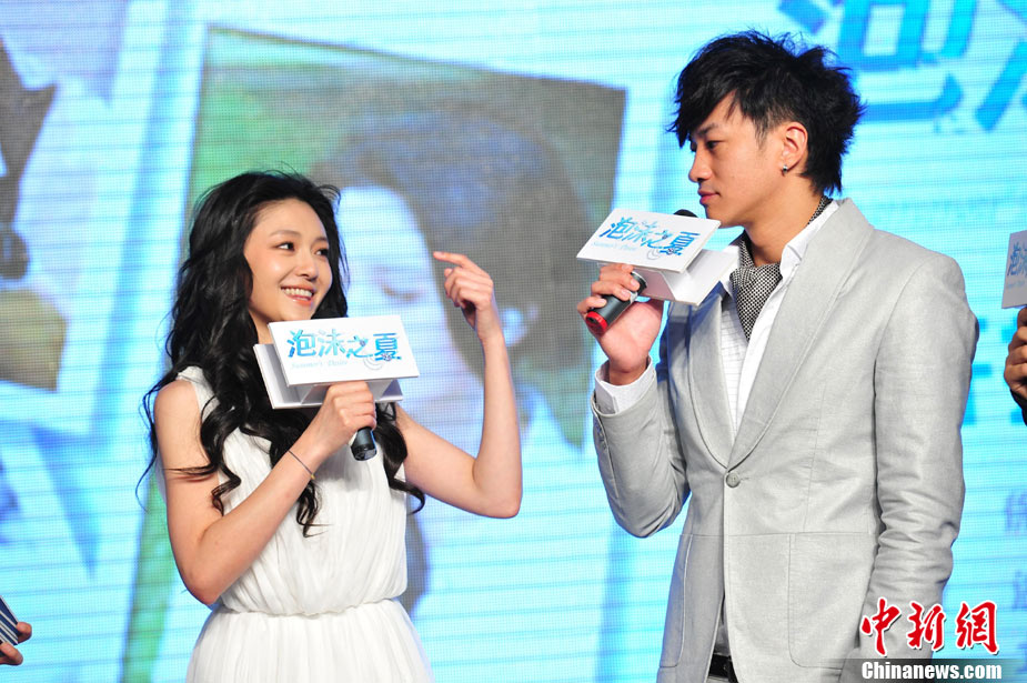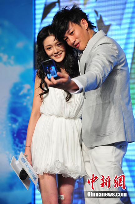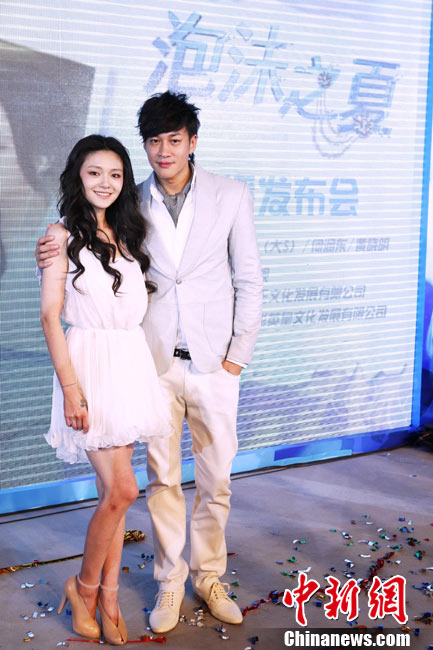 8月25日,偶像劇《泡沫之夏》在北京舉行了開(kāi)播發(fā)布會(huì),主演大S與何潤(rùn)東出席。時(shí)尚女王大S浪漫卷發(fā)和夢(mèng)幻白裙造型似童話中的公主,與“夢(mèng)幻泡沫 浪漫之夏”的主題十分貼合。何潤(rùn)東也默契地以西裝出席,兩人十分登對(duì)。活動(dòng)中,這對(duì)不斷傳出緋聞的熒屏最佳搭檔不僅毫不避嫌地互相夸獎(jiǎng),何潤(rùn)東還當(dāng)眾與大S頻頻用手機(jī)自拍親密合影停不下來(lái),還現(xiàn)場(chǎng)將自拍照上載至微博。中新社記者 李學(xué)仕 攝