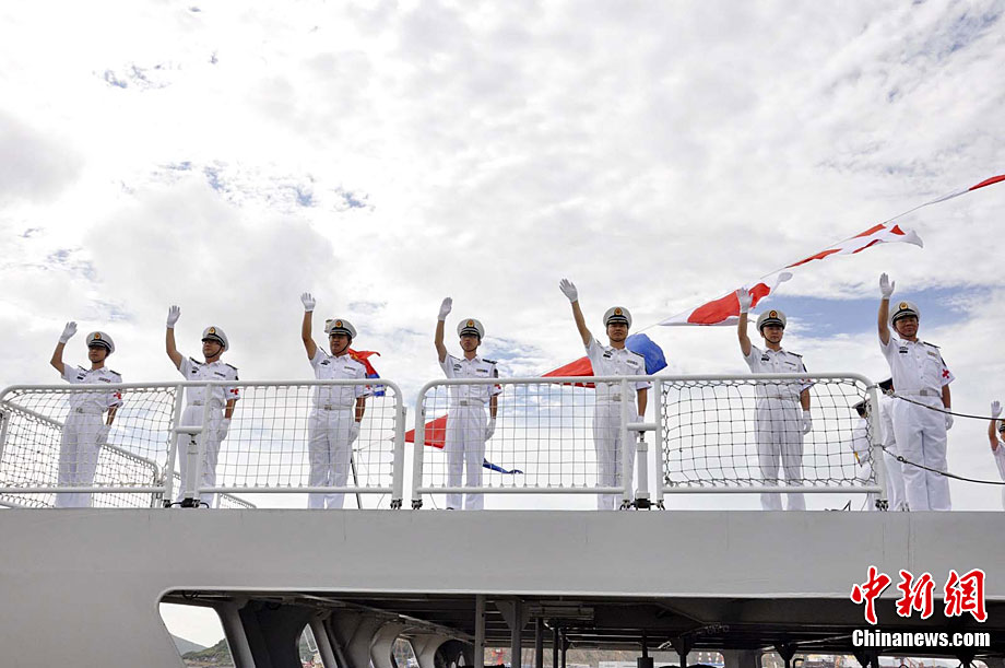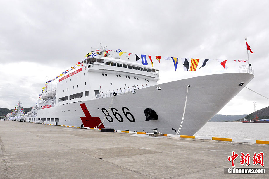 8月31日,經(jīng)中央軍委批準(zhǔn),由中國(guó)自行研制的世界首艘萬噸級(jí)“和平方舟”號(hào)醫(yī)院船從舟山某軍港啟航,前往亞丁灣海域及吉布提、肯尼亞、坦桑尼亞、塞舌爾、孟加拉五國(guó)執(zhí)行“和諧使命——2010”任務(wù)。這是中國(guó)“和平方舟”號(hào)醫(yī)院船首次赴國(guó)外執(zhí)行巡診及醫(yī)療服務(wù)任務(wù)。圖片來源:cnsphoto 胡善敏 攝