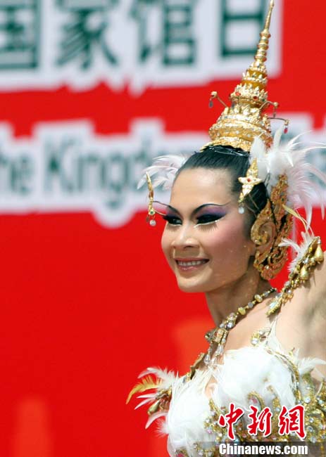 9月5日,上海世博會迎來泰國國家館日。當日在世博中心舉行的慶典儀式上,一位泰國女舞者為大家表演泰國傳統(tǒng)舞蹈,展示迷人的泰式風情。中新社記者 湯彥俊 攝