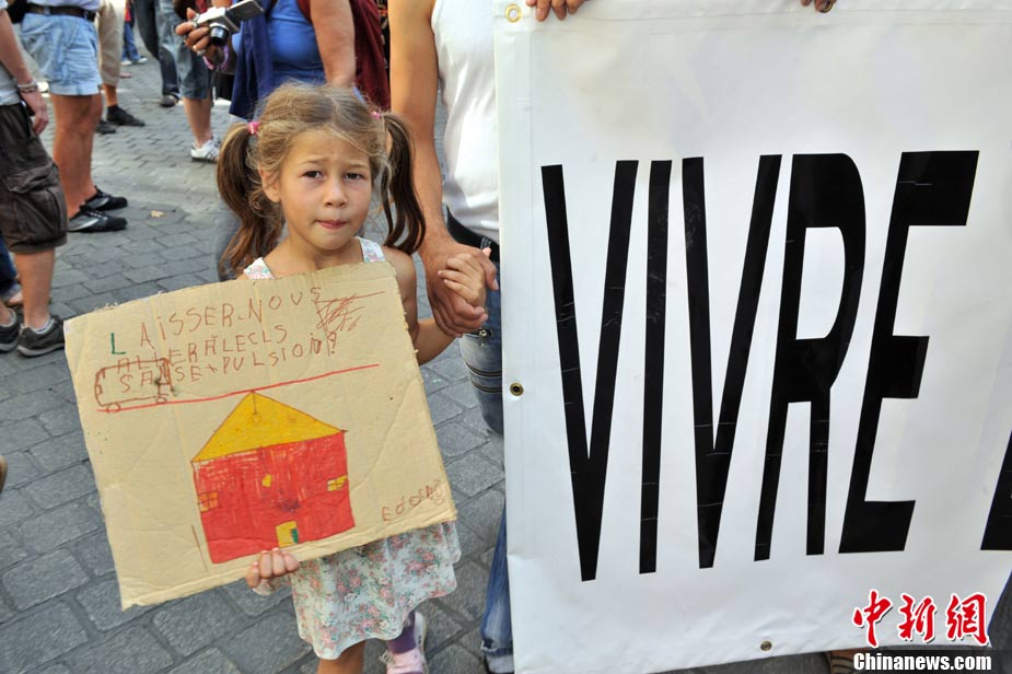 法國全國各地4日有數以萬計的群眾上街示威,抗議政府最近采取新政策,強行驅逐吉卜賽人出境。歐洲其它城市包括貝爾格萊德和羅馬,也有群眾游行聲援吉卜賽人。圖為在法國南特,民眾示威抗議政府強行驅逐吉普賽人。