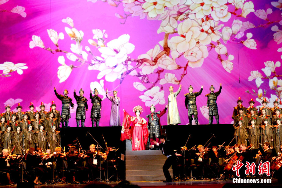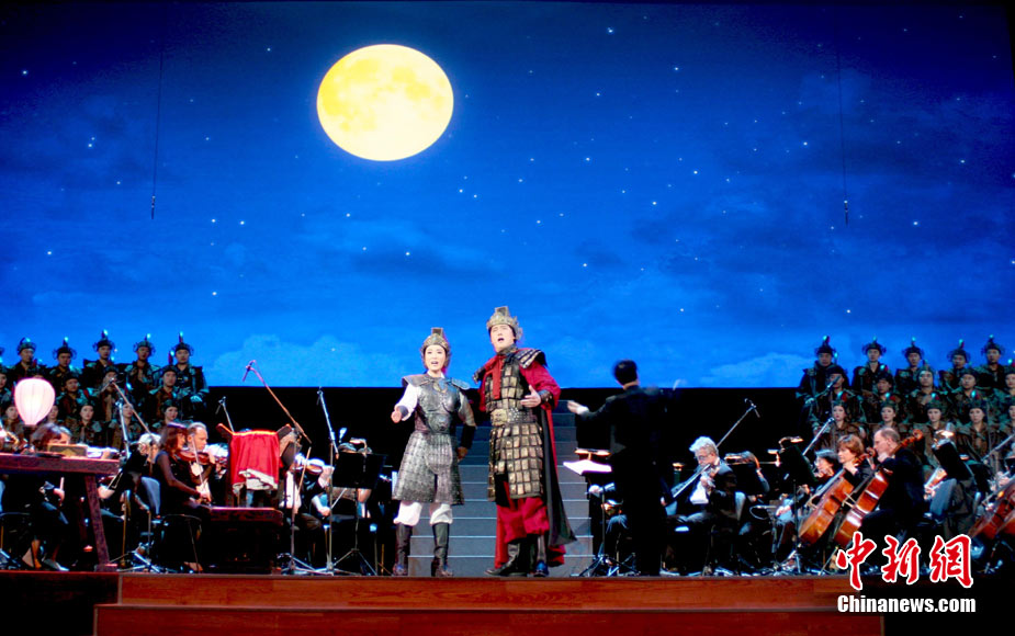 9月9日晚,中國(guó)人民解放軍總政治部歌舞團(tuán)攜大型原創(chuàng)民族歌劇《木蘭詩(shī)篇》在莫斯科克里姆林宮大劇院成功演出。作為俄羅斯“漢語(yǔ)年”框架下的一項(xiàng)重要活動(dòng),此次赴俄首場(chǎng)演出由青年歌唱家譚晶出演花木蘭一角。中新社發(fā) 田冰 攝