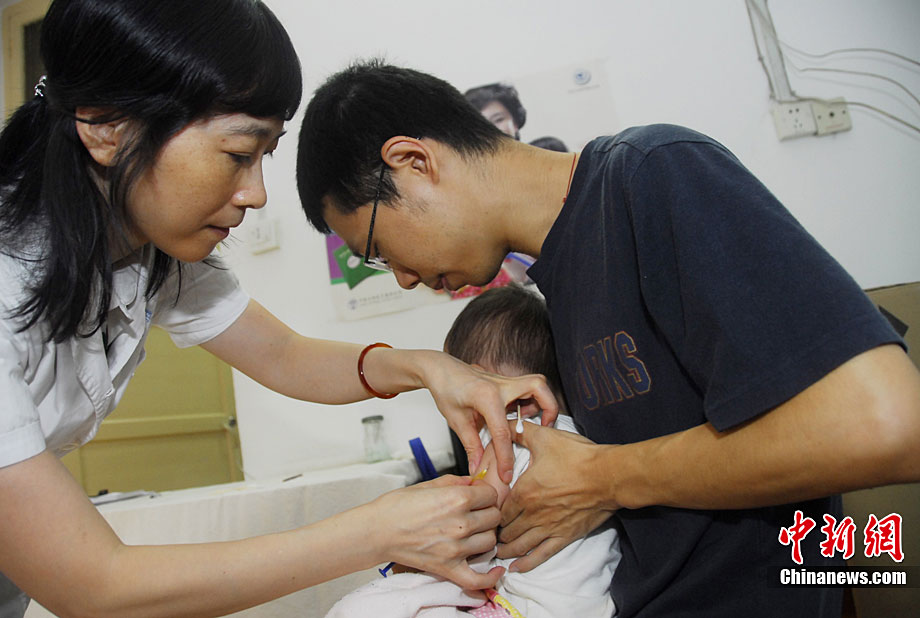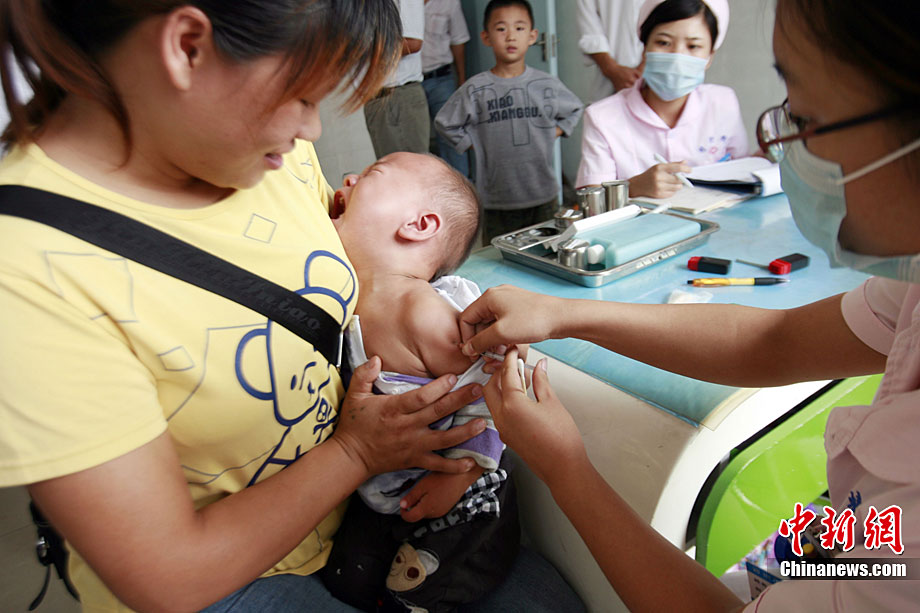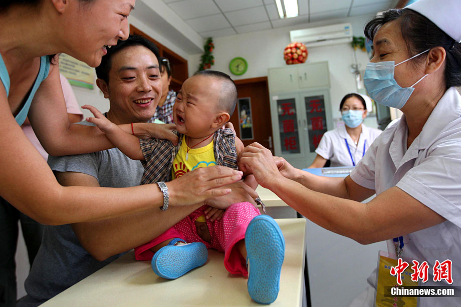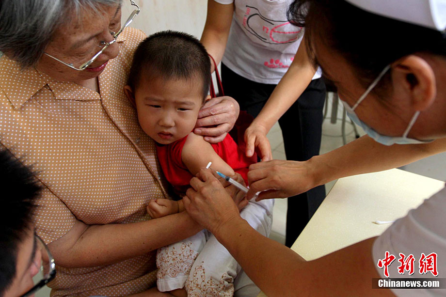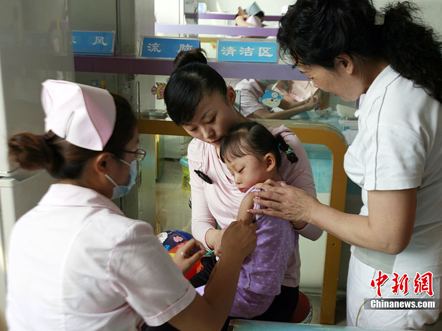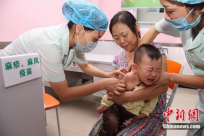 9月11日,中國史上最大規模的“麻疹強化免疫”啟動,河南省鄭州市第二人民醫院疫苗接種醫生展示由中國企業自行生產的麻疹疫苗。據中國疾控中心副主任楊維介紹,目前中國使用的麻疹疫苗,全部都是由中國企業自己來生產,據初步統計,將近一億兒童接種麻疹疫苗。中新社記者 王中舉 攝
