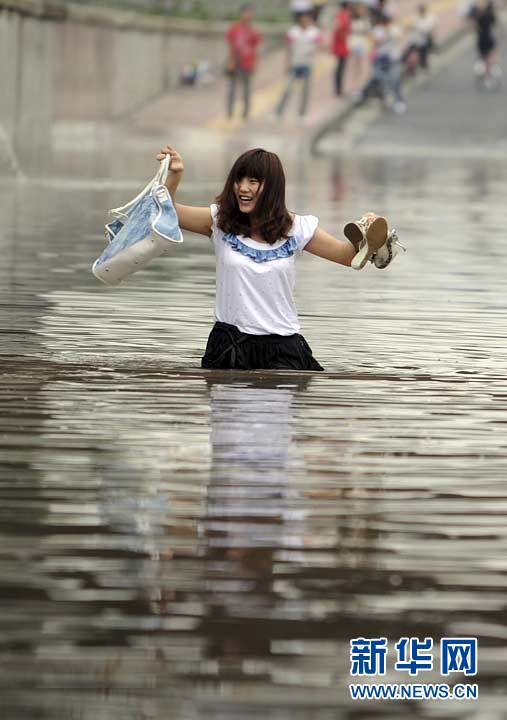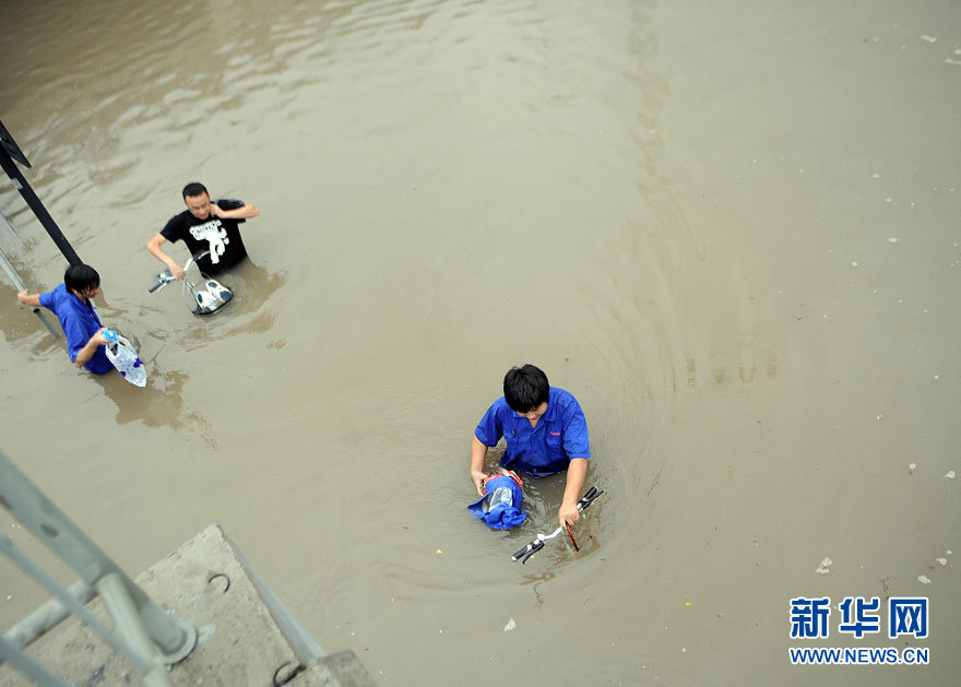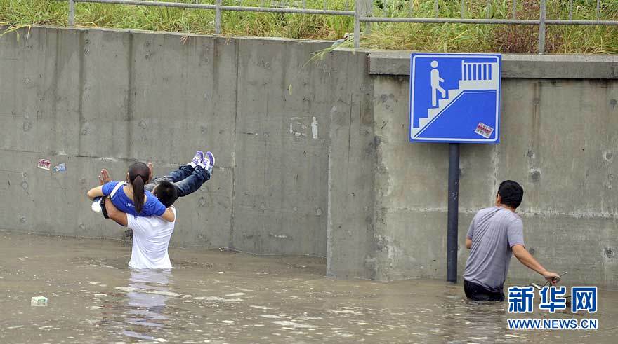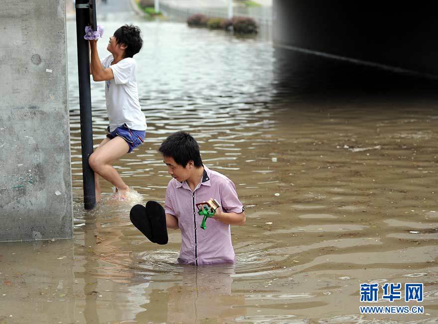 9月11日下午,杭州市濱江區火炬大道鐵路涵洞內積水嚴重,行人涉水而行。受“莫蘭蒂”影響,自9月11日凌晨4時起,杭州市濱江區突降暴雨,多處地段出現積水,據氣象部門測算,該區內最大降雨量超過230毫米,為歷史罕見。胡元勇 攝 圖片來源:新華網