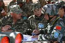9月14日,“和平使命-2010”上海合作組織(上合組織)成員國武裝力量聯合反恐軍事演習,按計劃在哈薩克斯坦馬特布拉克訓練場進行聯演戰役準備階段的首次合練。圖為中方參演部隊的坦克參加合練。中新社記者 孫自法 攝