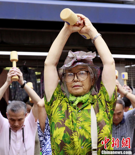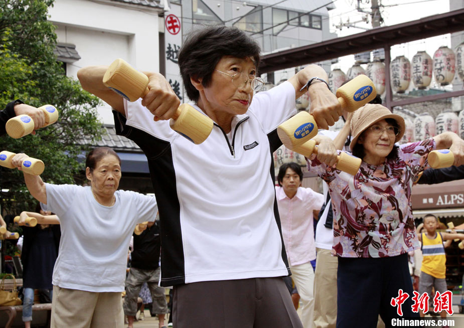 日本民眾集體做啞鈴操迎接敬老日
