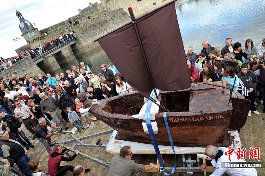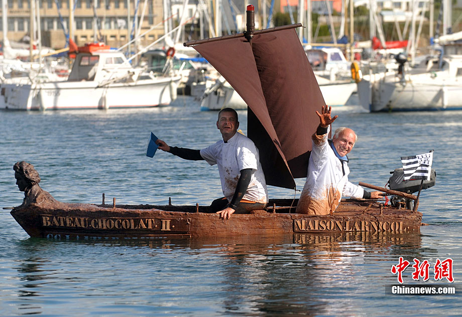 當地時間9月25日,一艘用巧克力和冰糖制造的帆船在法國西北菲尼斯泰爾省的孔卡諾港下海試水,吸引不少居民和游客觀看。這艘巧克力帆船長3.5米、重1.2噸,由法國名匠設計。帆船的龍骨全部使用冰糖搭建,除風帆和發動機外,其他部分則使用巧克力做材料。當天,這只巧克力帆船載著制造者和一名乘客成功駛離孔卡諾港,在海上巡航數圈后安全返回,現場觀眾彩聲一片。