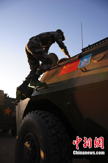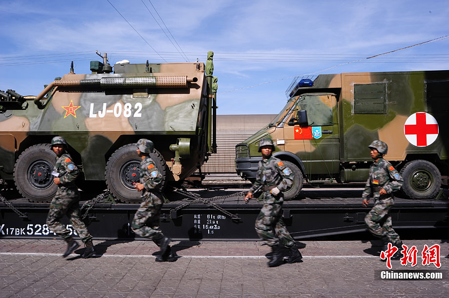 9月10日至9月25日,為期16天的“和平使命-2010”聯(lián)合反恐軍事演習(xí)在哈薩克斯坦舉行。圖為中方參演部隊在做出發(fā)前的準(zhǔn)備。張斌 攝
