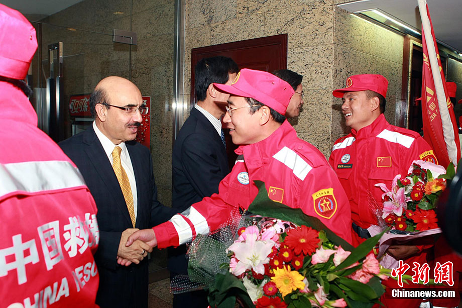 10月4日,中國國際救援醫療隊圓滿完成任務,結束了在巴基斯坦為期40天的國際人道主義援助,于當日10時左右抵達北京首都國際機場。經過近40天的努力,兩批救援醫療隊共診治患者25664人次,開展手術100余例,已經圓滿完成了這次國際救援任務,受到聯合國衛生組織、巴基斯坦政府和當地患者的高度贊譽,較好地展示了救死扶傷的國際人道主義精神,彰顯了中國的良好形象,為中巴友誼賦予了新的內涵。圖為首席醫療官、武警總醫院副院長梁立武帶領救援隊勝利凱旋。中新社發 姚洪華 攝