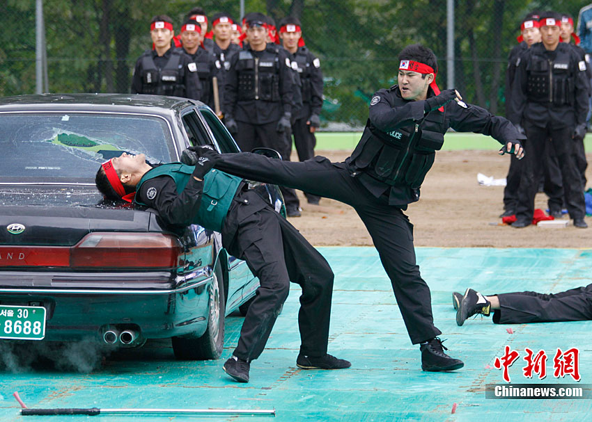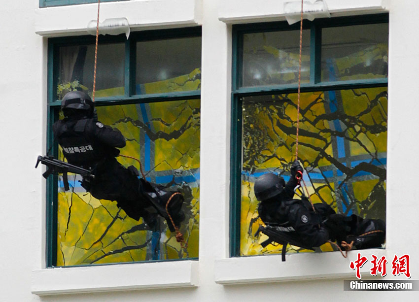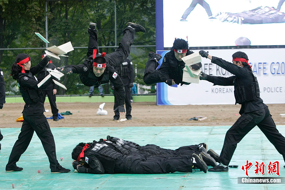 當?shù)貢r間10月4日,韓國特警在首爾舉行了反恐演習。此次演習是為了即將于11月在韓國舉行的G20首腦峰會而做的準備工作。