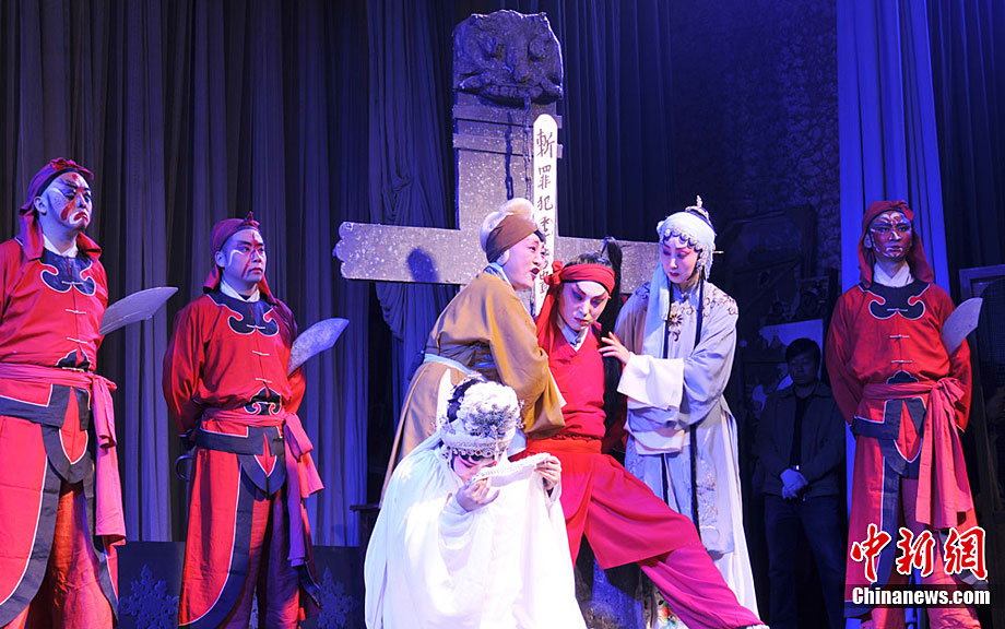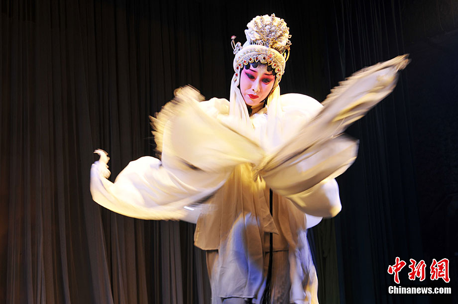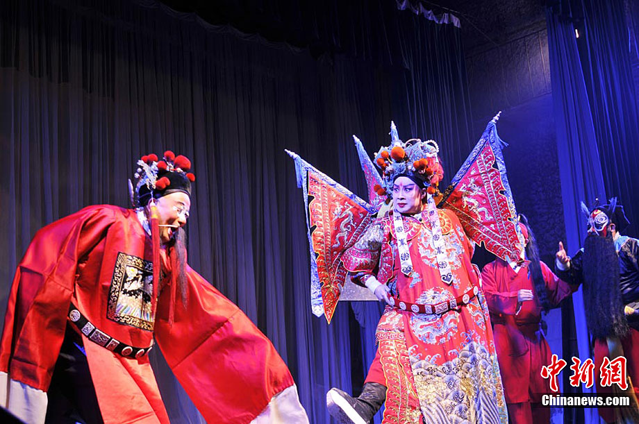 10月18日至22日,甘肅秦劇團到基層為鄉下人唱“大戲”,演員們唱念做打演,招招真功夫給鄉親們送來了一場場戲曲大餐。《三滴血》、《火焰駒》、《竇娥冤》等演出,一出出膾炙人口的傳統劇目風格各異,精彩紛呈,鄉親們在一次次的情節跌宕中笑聲不止、掌聲不斷。秦腔又稱亂彈,源于西秦腔,流行于中國西北的陜西、甘肅、青海、寧夏、新疆等地,又因其以棗木梆子為擊節樂器,所以又叫“梆子腔”,俗稱“桄桄子”,經國務院批準列入第一批國家級非物質文化遺產名錄。楊艷敏 攝