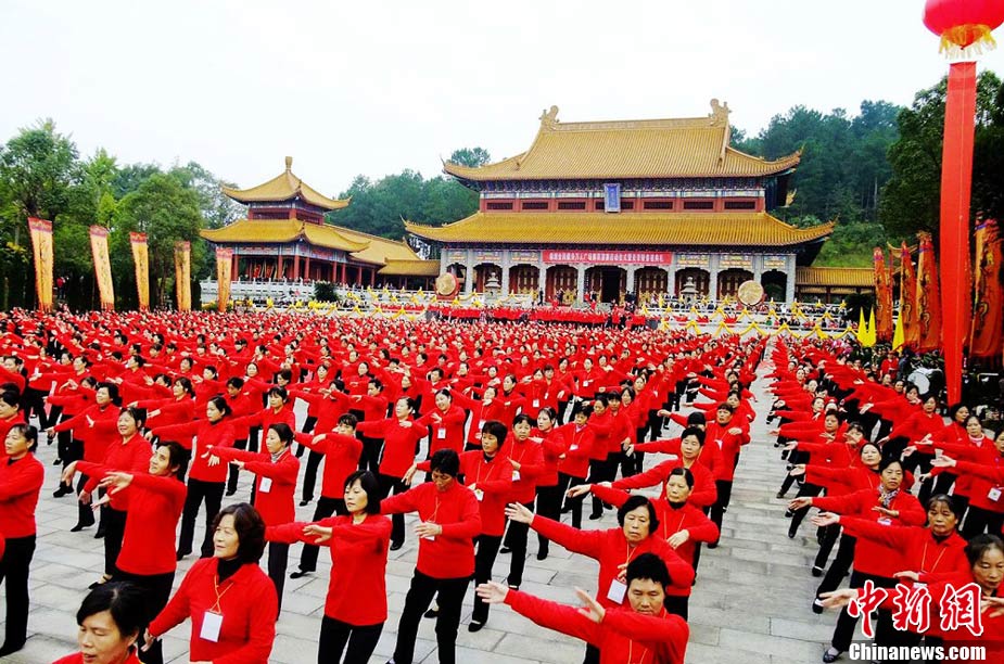 10月29日,來自湖南株洲市九個縣(市)區的1500余名廣場舞愛好者代表齊聚炎帝陵,啟動“株洲全民健身萬人廣場舞表演大賽”暨炎帝陵祭祖典禮。 張興林 黃春平攝