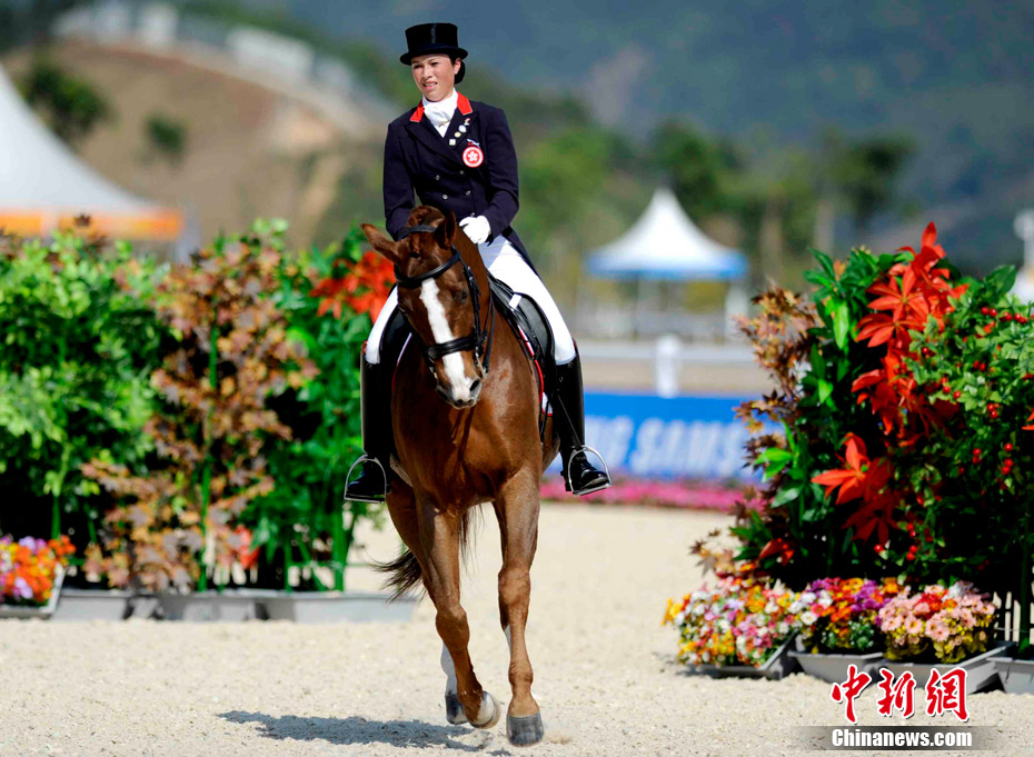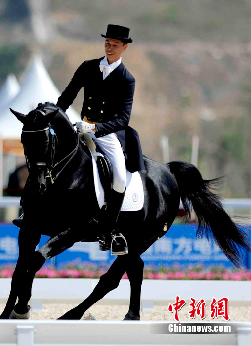 11月14日,廣州亞運(yùn)馬術(shù)比賽在廣州馬術(shù)場(chǎng)舉行,這個(gè)號(hào)稱亞運(yùn)最昂貴的比賽項(xiàng)目上駿馬、美女、帥哥齊全,據(jù)悉,比賽中的馬匹最少都要幾百萬(wàn)人民幣,有的更高達(dá)幾千萬(wàn),參賽選手也云集了阿拉伯國(guó)家的皇室貴族和富豪。中新社記者 王東明 攝