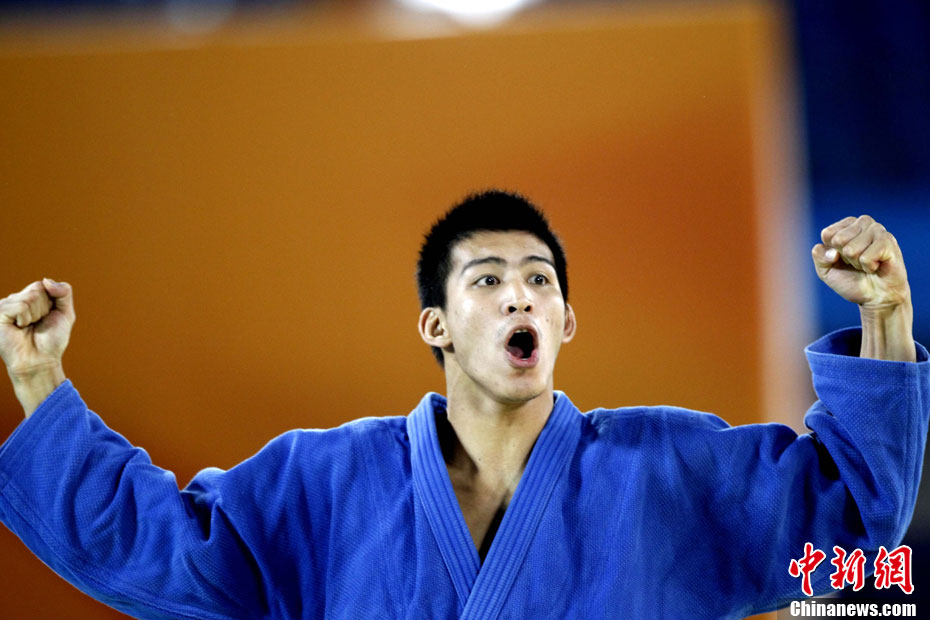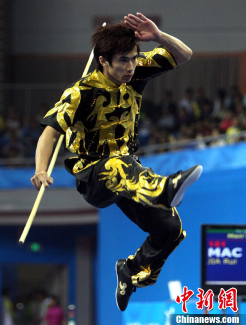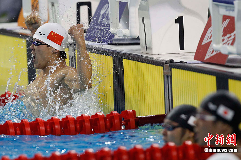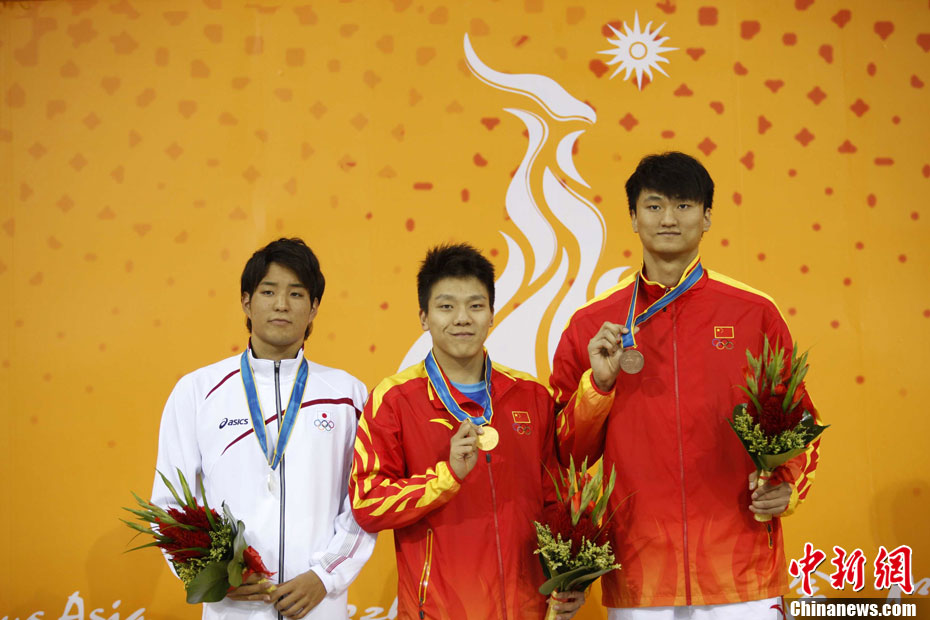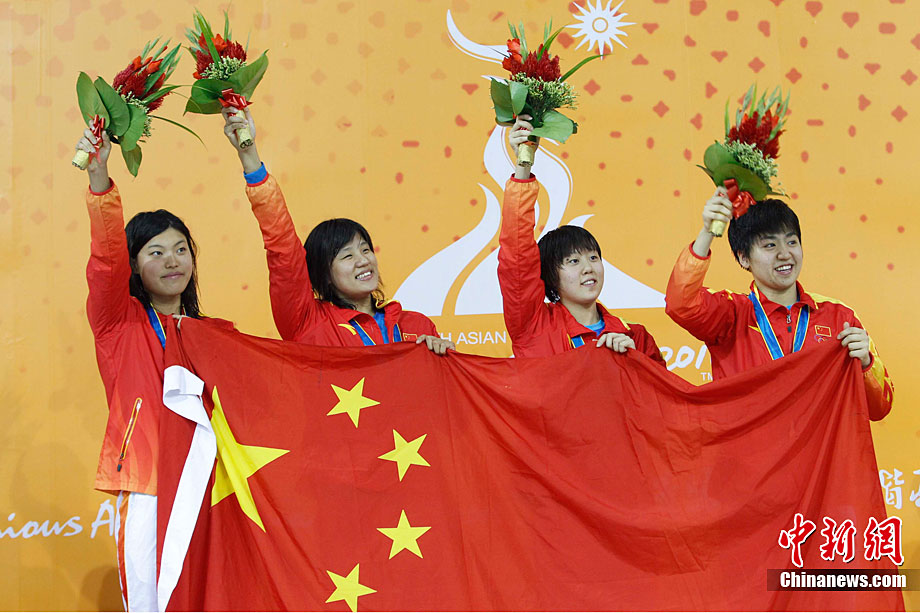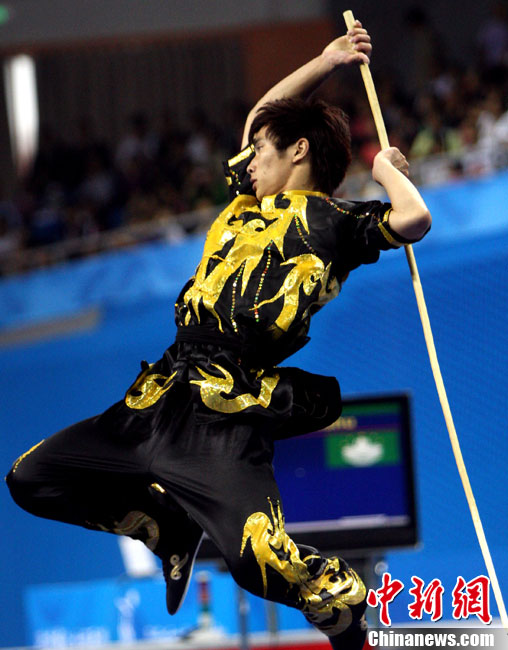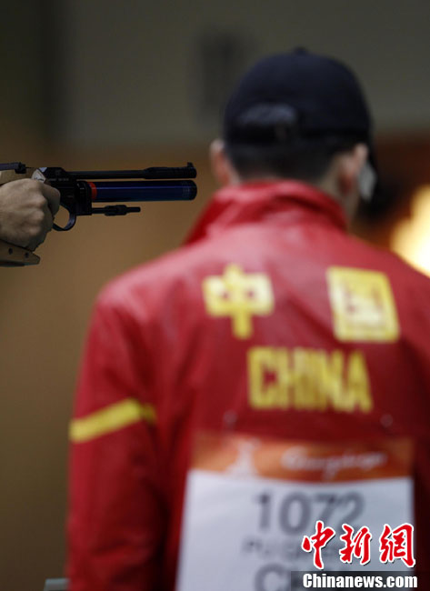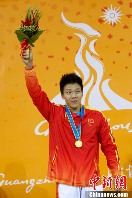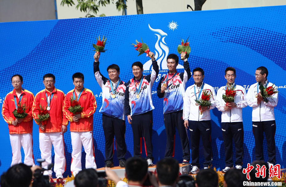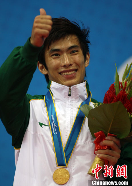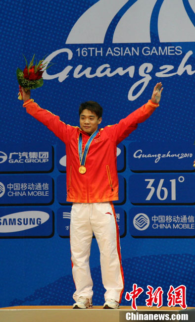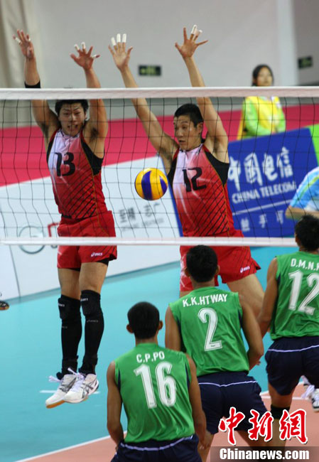 11月14日晚,在2010年廣州亞運(yùn)會(huì)男子排球小組賽第二輪比賽中,中國男排直落三局以3-0零封中華臺(tái)北男排,輕松獲得小組賽的兩連勝,三局比分是25-18、25-18和25-21。 中新社記者 鄧霞 攝