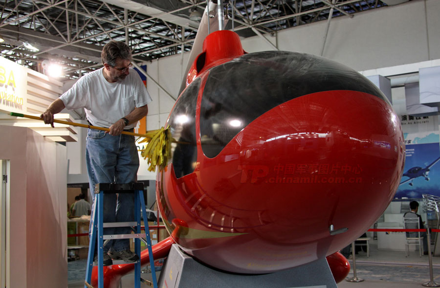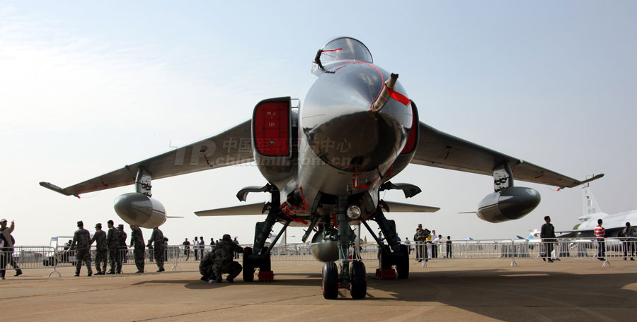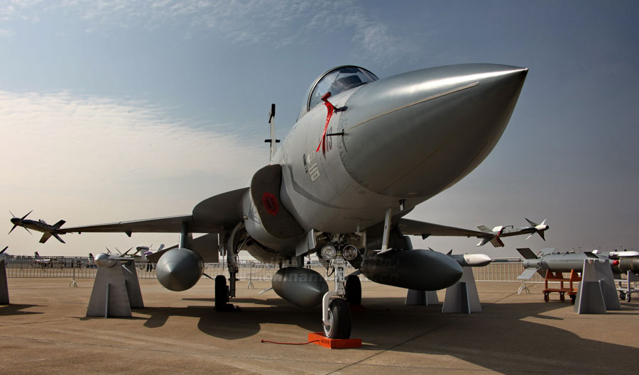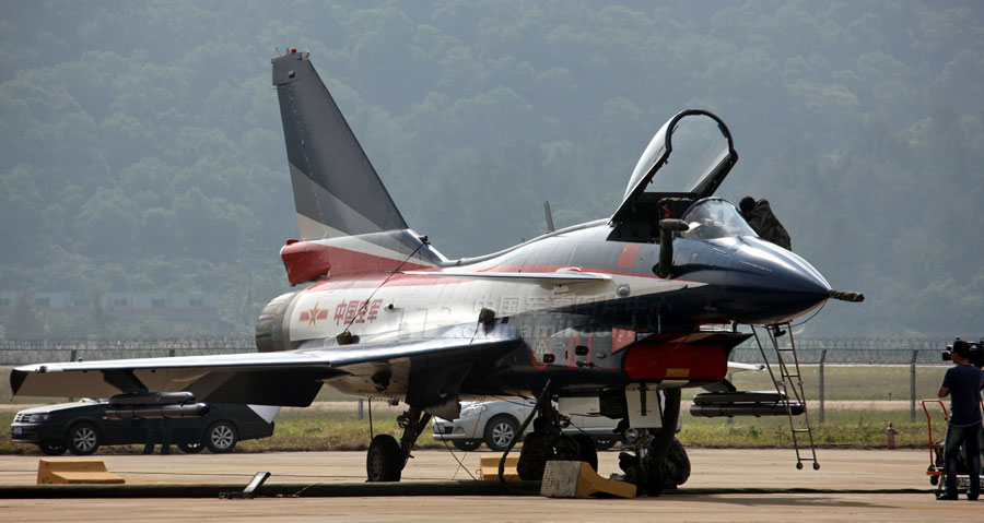 11月14日,參加第8屆中國國際航空航天博覽會的各場館基本布置就緒。圖為殲10表演機。圖片來源:中國軍網 喬天富 攝