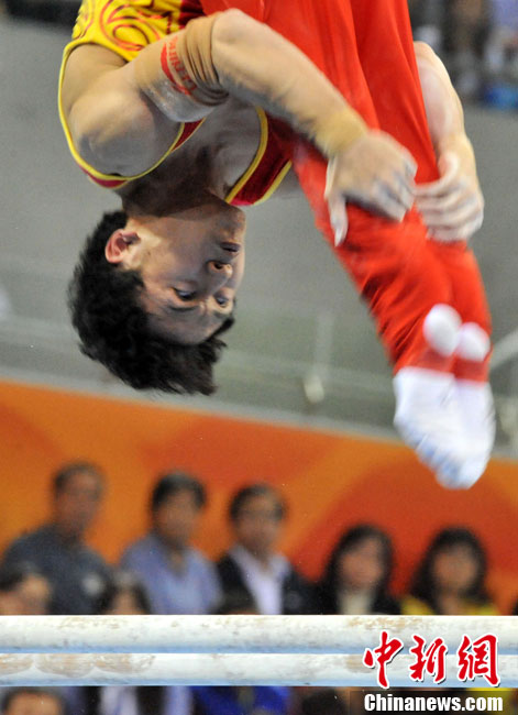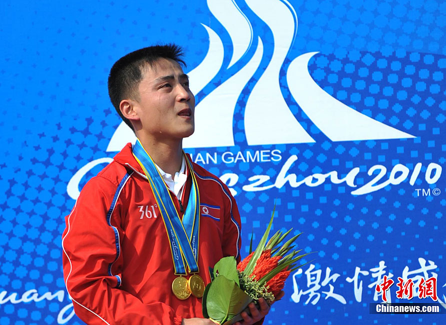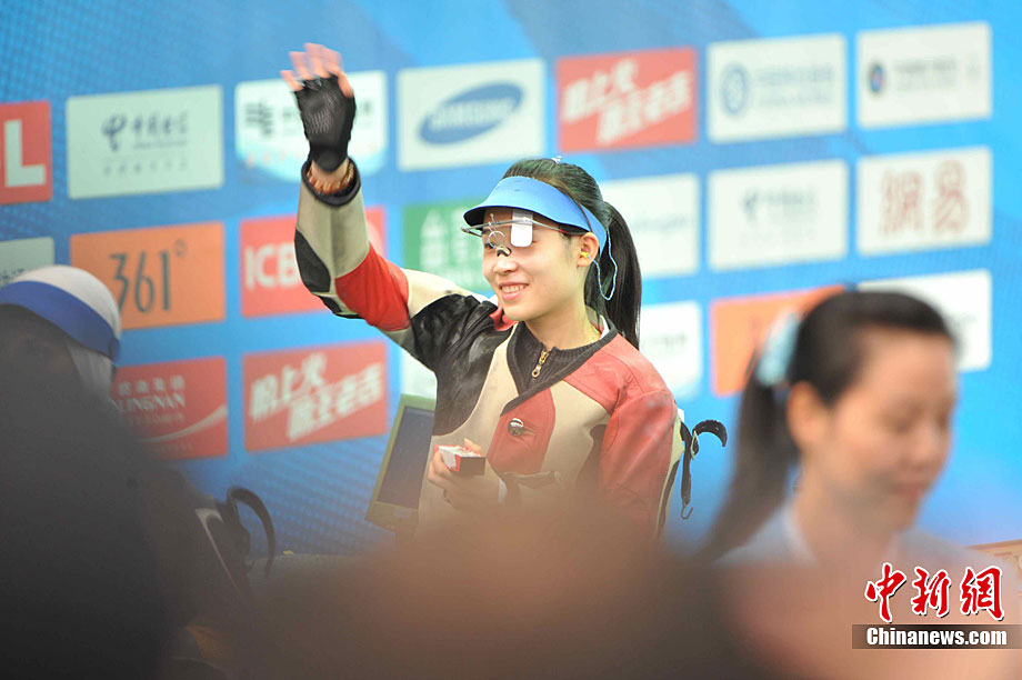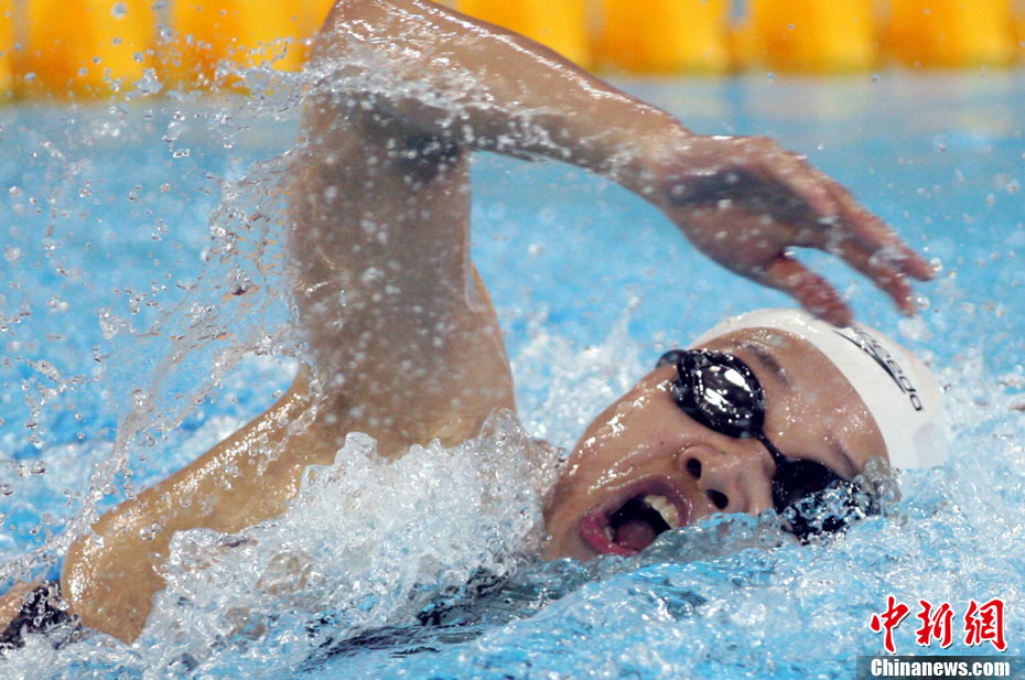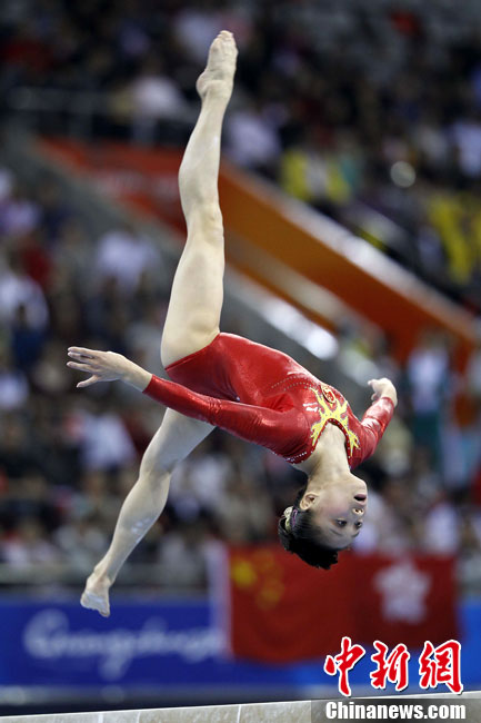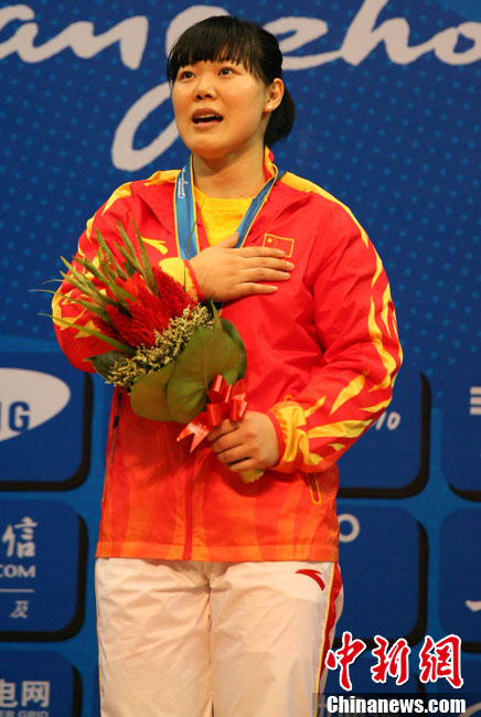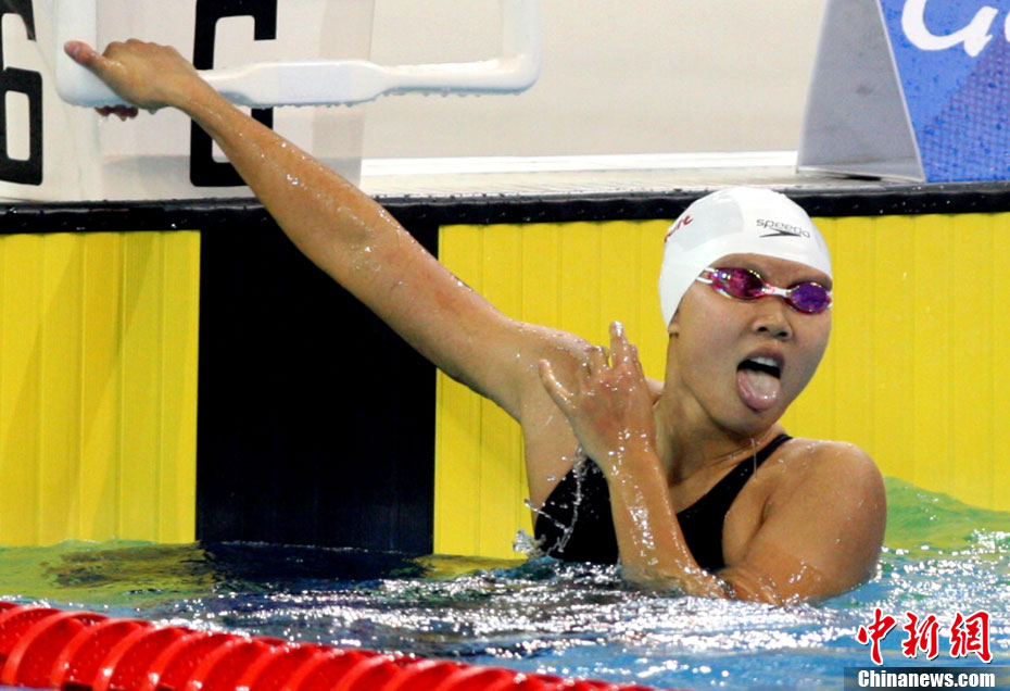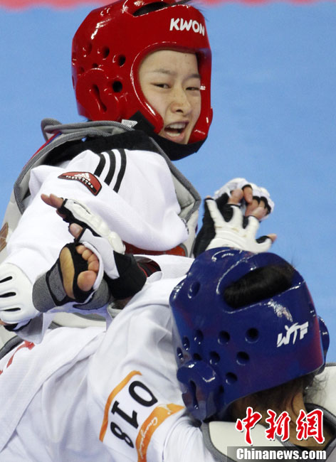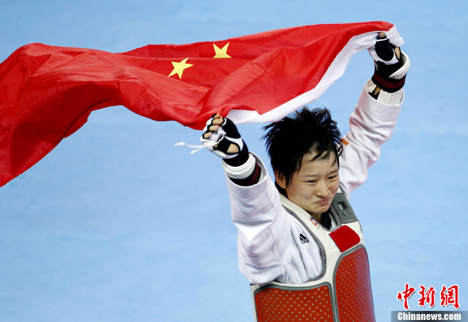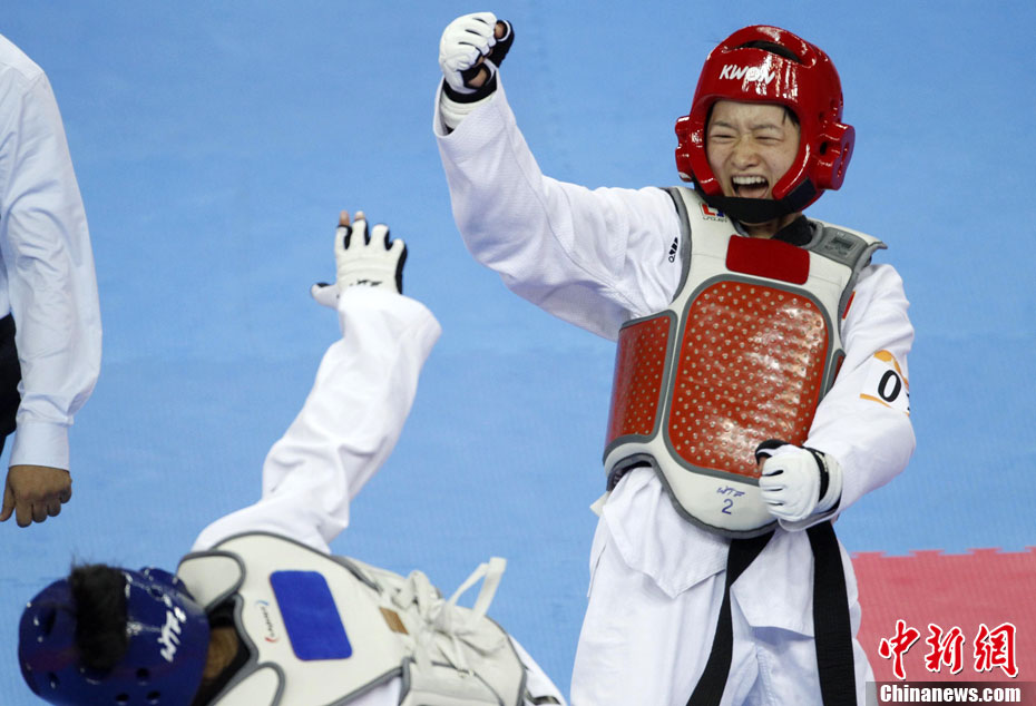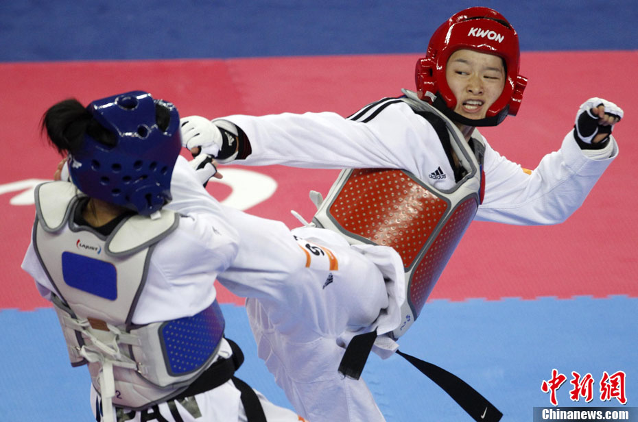 11月17日,廣州亞運會跆拳道比賽中,中國選手吳靜鈺戰勝日本選手笠原江梨香獲得女子49公斤以下級冠軍。中新社記者 杜洋 攝