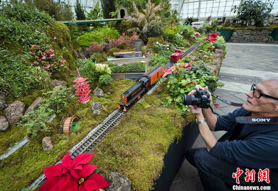 當(dāng)?shù)貢r(shí)間11月19日,美國舊金山金門公園展出藝術(shù)家以廢舊物品制成的袖珍版城市地標(biāo),作為公園140周年紀(jì)念的特別禮物,以環(huán)保節(jié)能主題再現(xiàn)這座城市的獨(dú)特魅力。圖為兒童對(duì)好奇觀看用舊刀叉、牙簽、酒瓶塞、刮刀等搭建的舊金山輪渡大廈。中新社發(fā) 陳鋼 攝