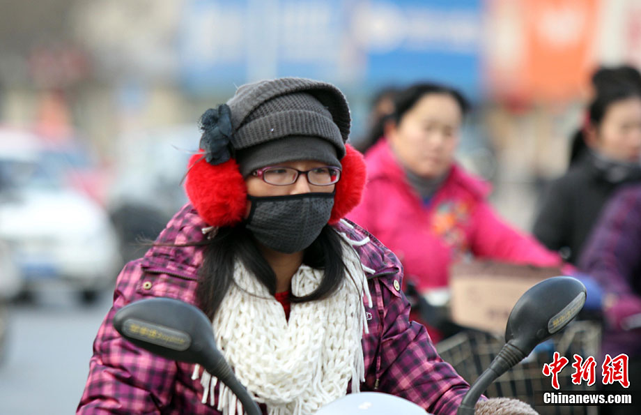 12月6日,河南鄭州,民眾全副“武裝”抵御寒潮襲擊。5日傍晚,中央氣象臺(tái)發(fā)布的天氣預(yù)報(bào)顯示,從當(dāng)日起,受強(qiáng)冷空氣影響,未來(lái)三天,中國(guó)中東部大部地區(qū)都將先后出現(xiàn)6~12℃降溫,其中,吉林東部、遼寧中東部、山東、江蘇等地的部分地區(qū)降溫幅度可達(dá)14~16℃。中新社記者 王中舉 攝