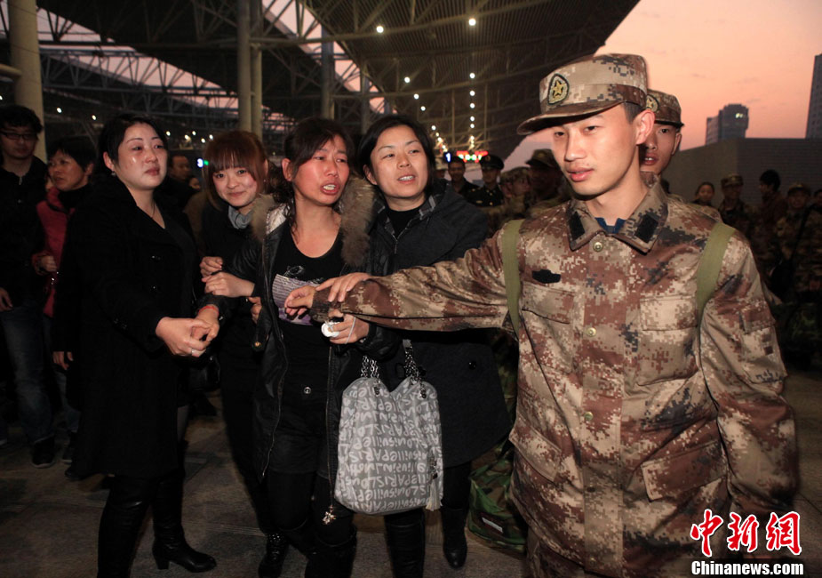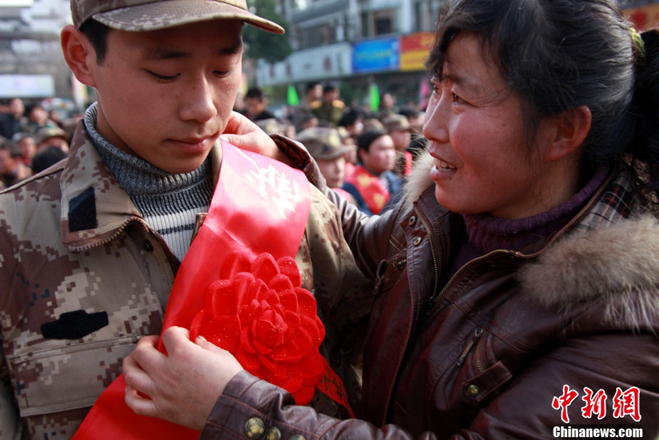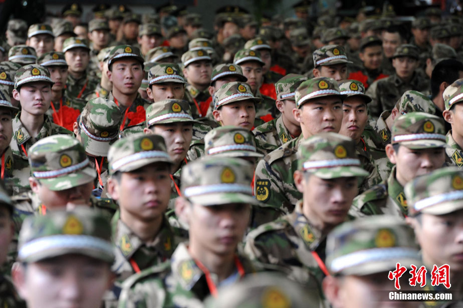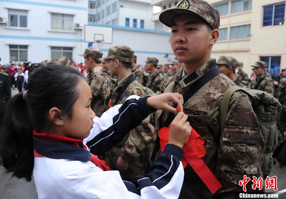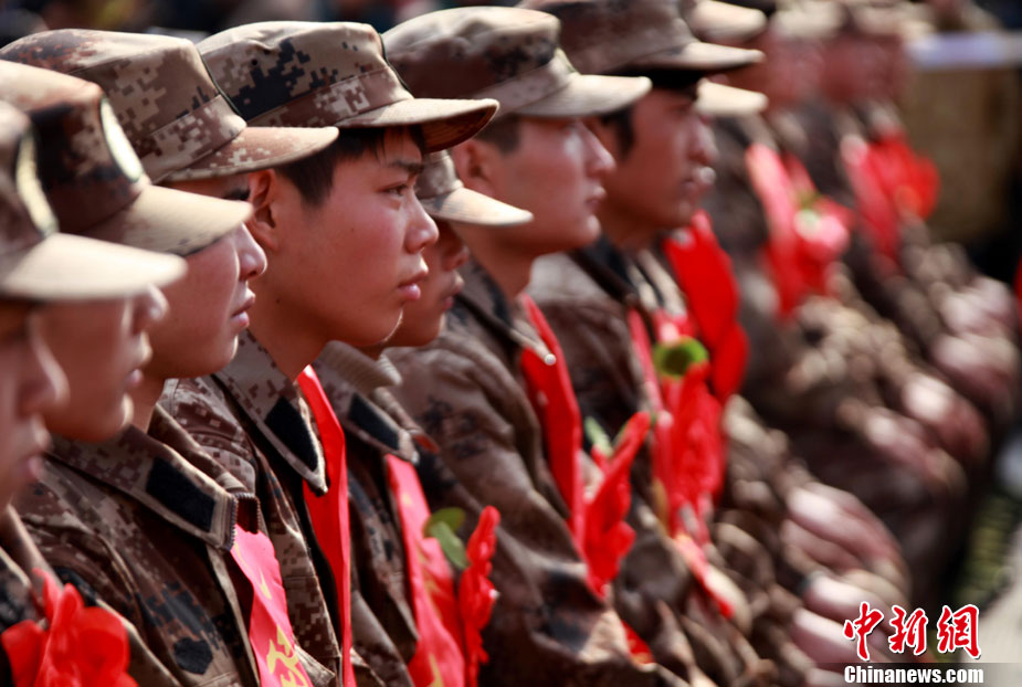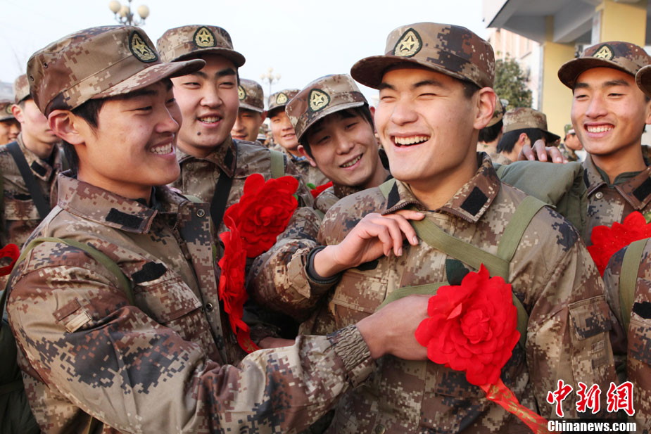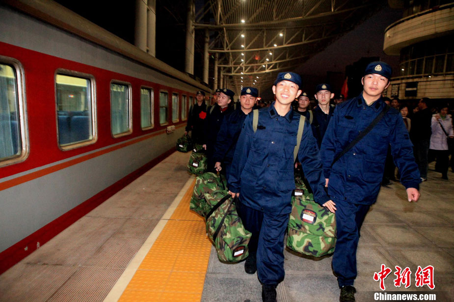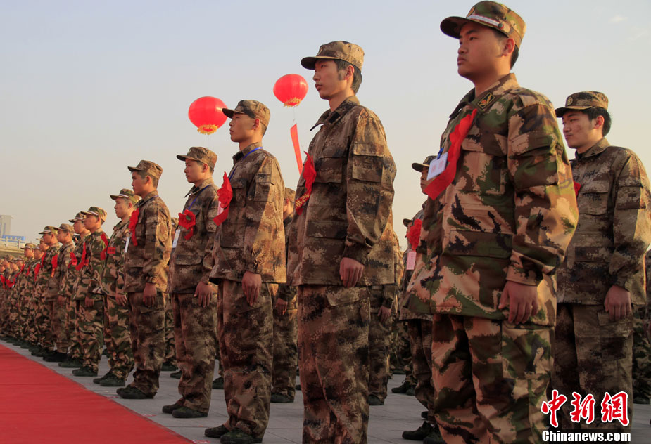 12月10日,北京市在西客站舉行隆重的歡送首批新兵儀式。來自東城、西城、朝陽、海淀等14個區的500名新戰士身穿軍裝,胸帶紅花,即將奔赴四川、陜西、湖北、河北等地軍營。北京市征召的新兵中,高校畢業生和在校生超過了三分之一。